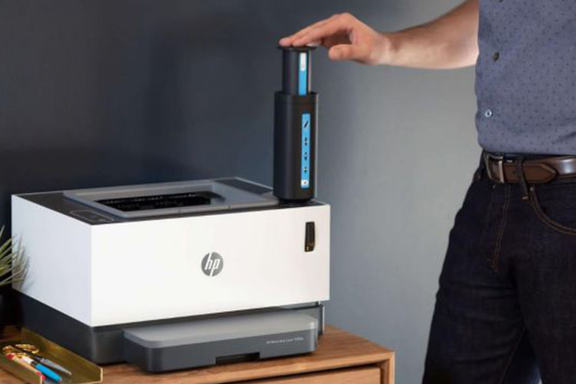 چاپگر لیزری Neverstop اچپی با کیت بارگیری مجدد مخصوص اچپی کار میکند، درواقع این کیت شامل سرنگ پلاستیکی و بزرگی، حاوی تونر چاپگر است. بهسادگی این سرنگ را مانند پیچ در شکاف مخصوص چاپگر قرار داده، اهرم سرنگ را فشرده تا تونر دستگاه کامل پر شود، سپس باید سرنگ را از محل خود خارج کرد. بهگفتهی اچپی این روند ۱۵ ثانیهای نسبت به دیگر چاپگرها مزیت بسیار بزرگی به حساب میآید. چاپگر لیزری Neverstop میتواند بیش از ۵ هزار صفحه را در همان شروع بدون نیاز به شارژ مجدد چاپ کند.