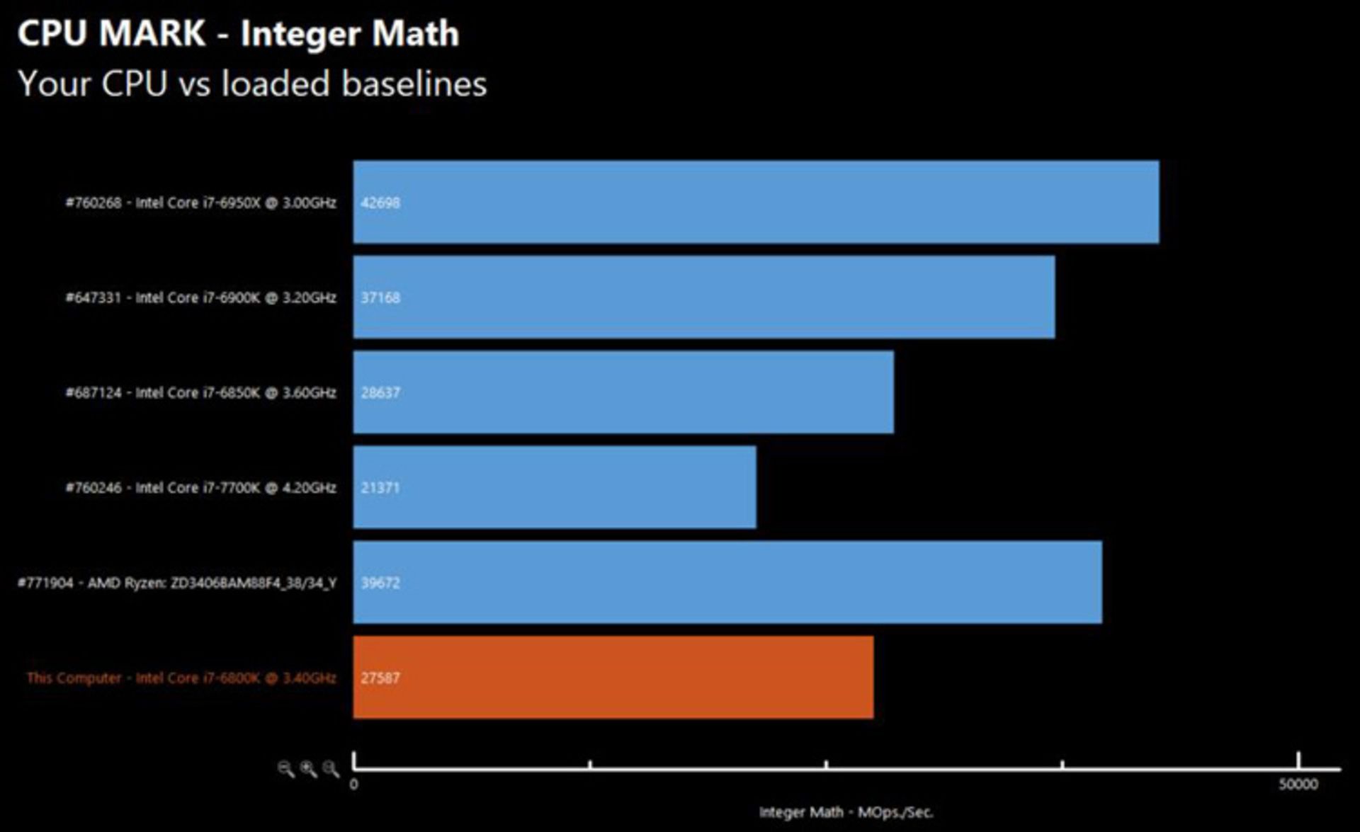 با توجه به نتایج منتشرشده میتوان R7-1700X را رقیبی برای Core i7-6850K خواند که در بیشتر تستها موفق شده است نتایجی نزدیک به رقیب اینتلی خود به دست بیاورد. پردازندهی AMD با کسب نتایجی نزدیک به Core i7-6900K در فاکتور قیمت نیز رقیب اینتلی را به چالش کشیده، هرچند نتایج کسبشده از نظر عملکرد نزدیک به این پردازنده است. فاکتور قیمت را باید یکی از اصلیترین عناصری خواند که پردازندههای AMD را به گزینهای خوب برای خریداران تبدیل میکند. برای مثال Core i7-6850K قیمتی حدود ۶۰۹ دلار دارد که با توجه به اطلاعات فاش شده از قیمت ۳۸۲ دلاری پردازندهی AMD، بسیار گران به نظر میرسد، حال آنکه پردازندهی AMD دو هستهی پردازشی بیشتر دارد و از اینرو از چهار ترد پردازشی بیشتر پشتیبانی میکند.