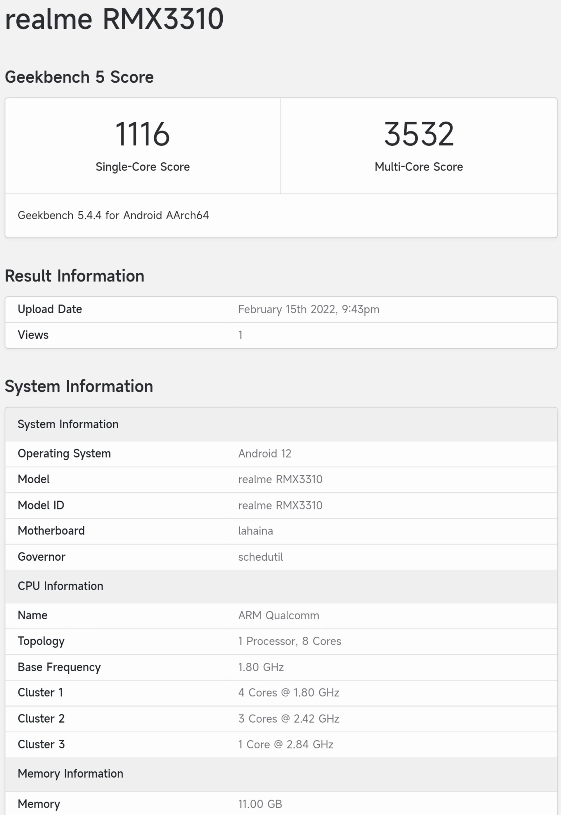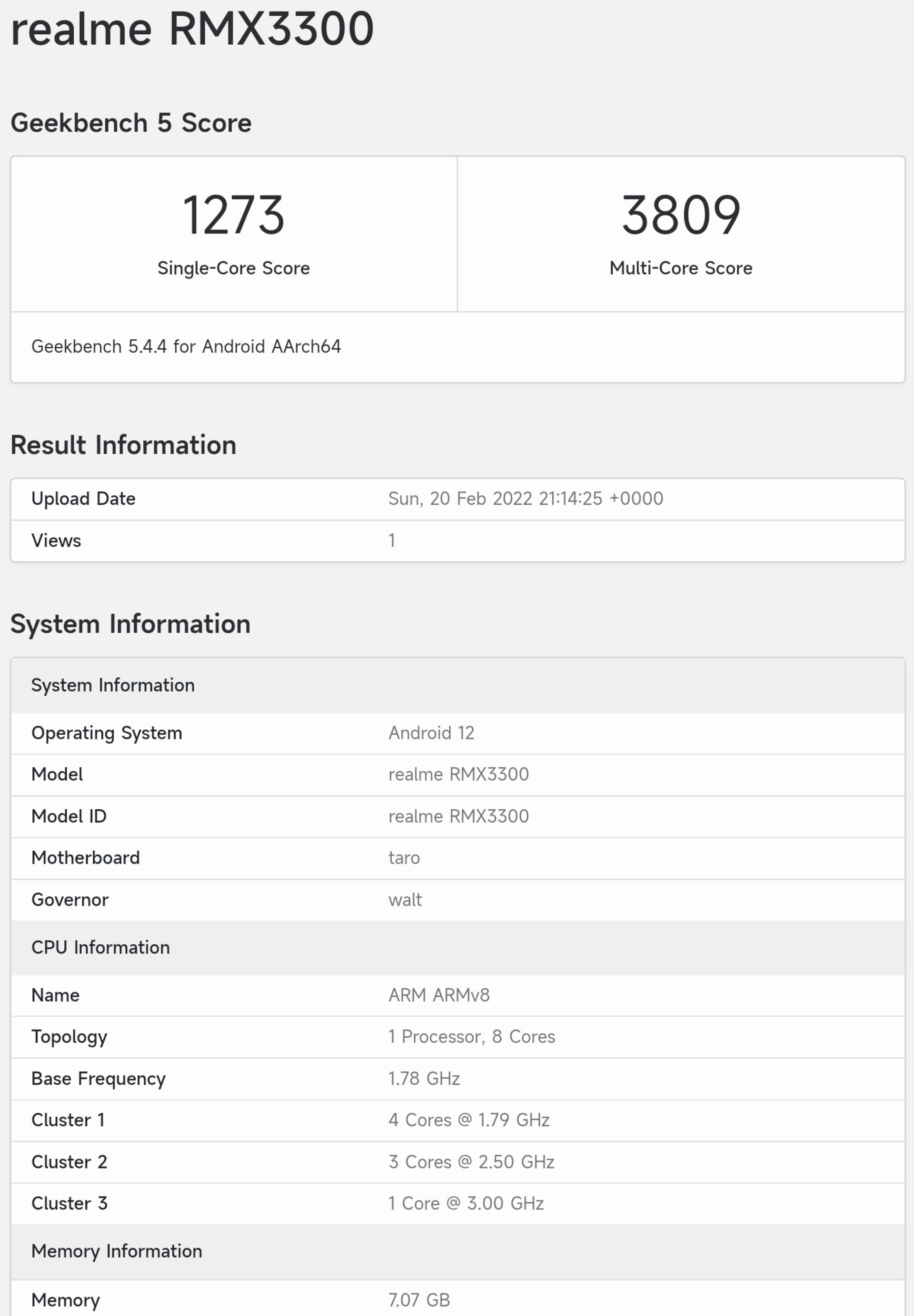 افشاگر شناخته شدهی Digital Chat Station روز ۱۴ اسفند ۱۴۰۰ در شبکهی اجتماعی Weibo نتایج بنچمارک گیکبنچ اجراشده روی دایمنسیتی ۸۱۰۰، اسنپدراگون ۸ نسل یک و اسنپدراگون ۸۸۸ را به اشتراک گذاشت؛ براساس این نتایج پردازندهی مدیاتک میتواند بهراحتی دو پردازندهی دیگر را در تست چندهستهای شکست دهد. هر سه دستگاه تستشده از برند ریلمی انتخاب شده بودند و گوشی برنده نیز مدل RMX3562 از این برند یا همان GT NEO3 ریلمی است که بهزودی راهی بازار میشود.