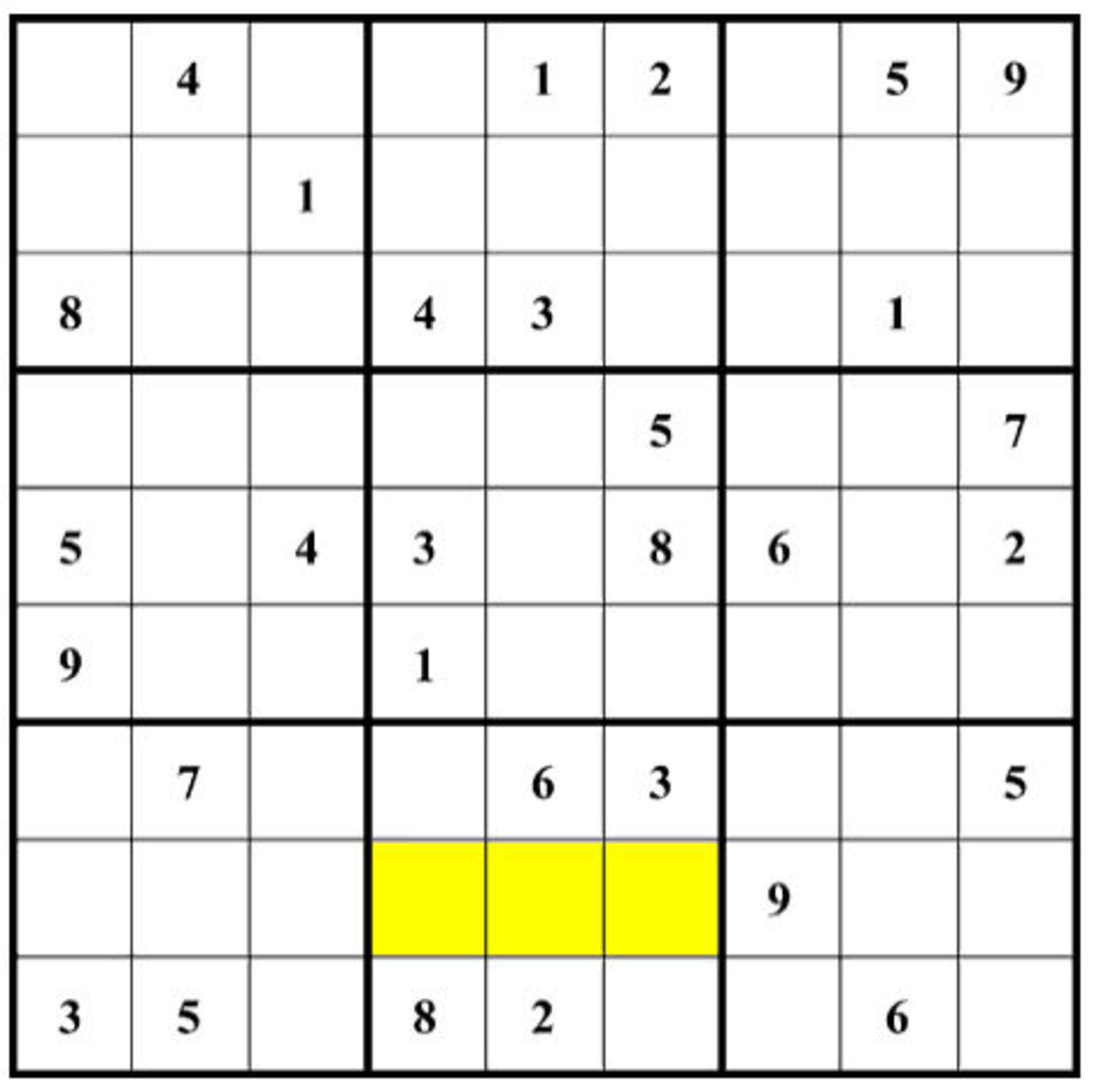 در جدول سوکودوی زیر از چپ به راست چه عددهایی در مربعهای زردرنگ قرار میگیرند؟