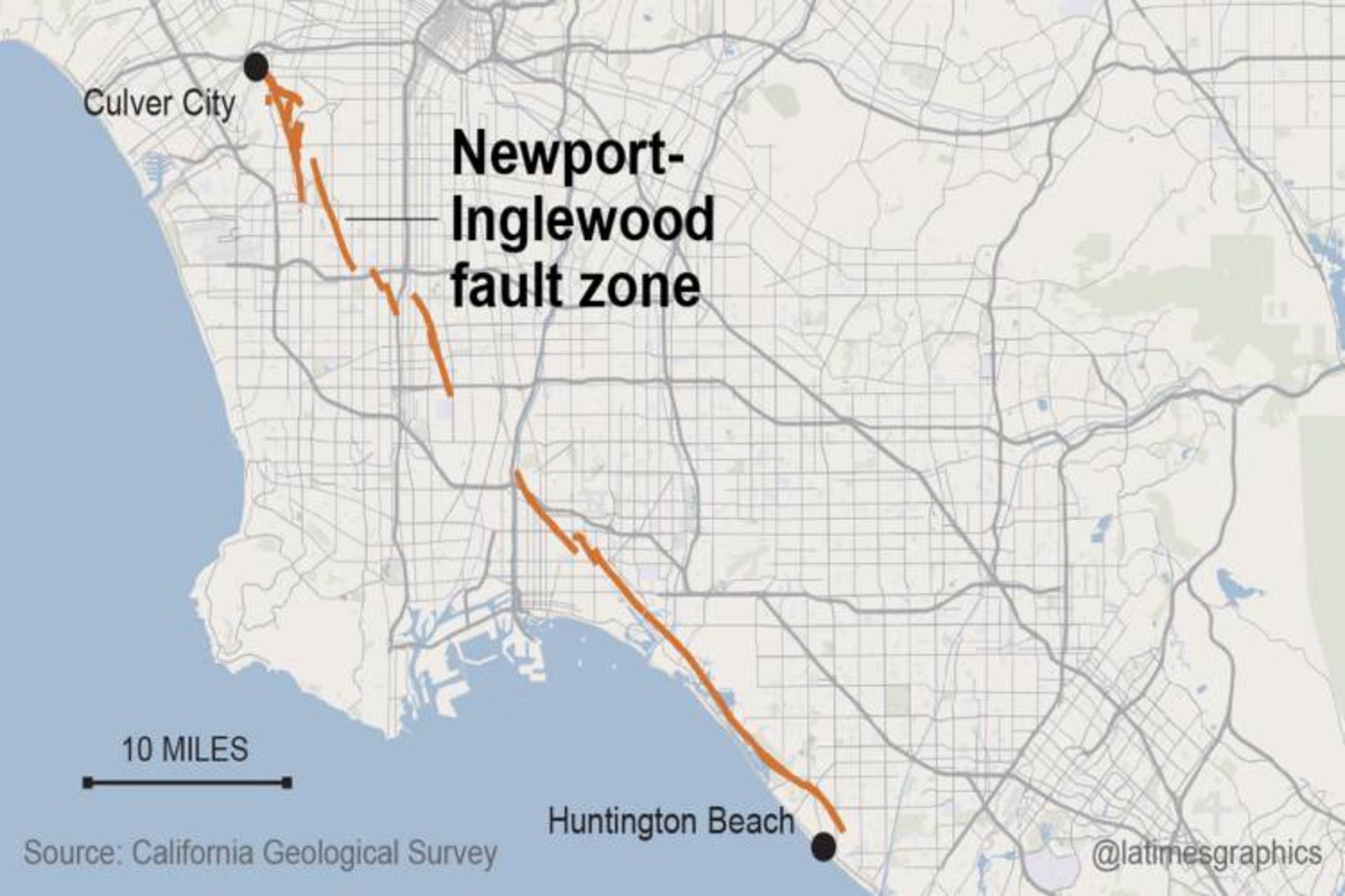 با این حال استفاده از قویترین حسگرهای موجود برای شناسایی مراکز اصلی لرزهها در نزدیکی منطقهی Pasadena به محققین نشان داد که ارتعاشهایی وجود دارند که از عمقی بیشتر از ۲۴ کلیومتری سطح زمین و در نزدیکی گوشتهی بیرونی رخ میدهند. این لرزشهای کوچک در نزدیکی گسل Newport-Inglewood شناسایی شدهاند. این گسل یکی از گسلهای خطرناک کالیفرنیای جنوبی به حساب میآید که سابقهی زلزلهی ۶.۳ ریشتری در سال ۱۹۹۳ را با ۱۱۵ کشته در ناحیهی لانگ بیچ دارد. بنابراین نه تنها از این گسل، بلکه از گسلهای دیگر کالیفرنیا نظیر بزرگترین گسل این ایالت، سن آندرس، هم میتوان انتظار لرزشهایی مشابه داشت.