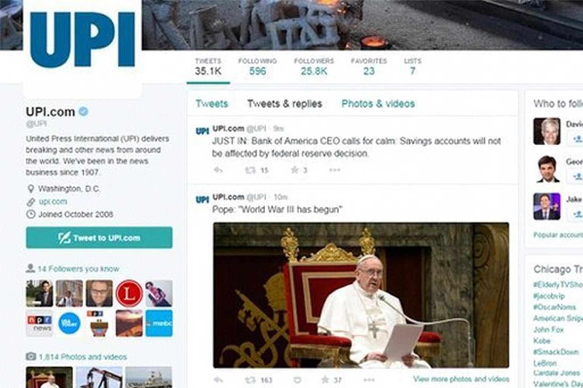 در پی هک حساب توییترِ نیویورک پست و یونایتد پرس اینترنشنال (UPI)، در یکی از پستهای جعلی روی اکانت توییتر این رسانهها صحبتهایی از زبان پاپ با مضمون «جنگ جهانی سوم شروع شده است» منتشر شده است.