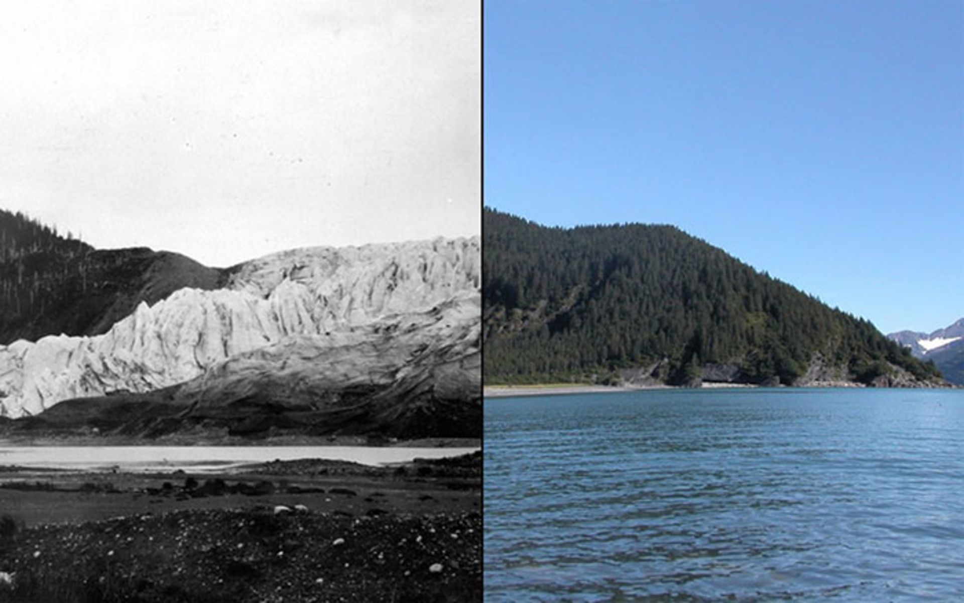 ذوب شدن یخهای یخچال توبوگان (Toboggan)، آلاسکا.... قبل: ۱۹۰۹- بعد: ۲۰۰۰