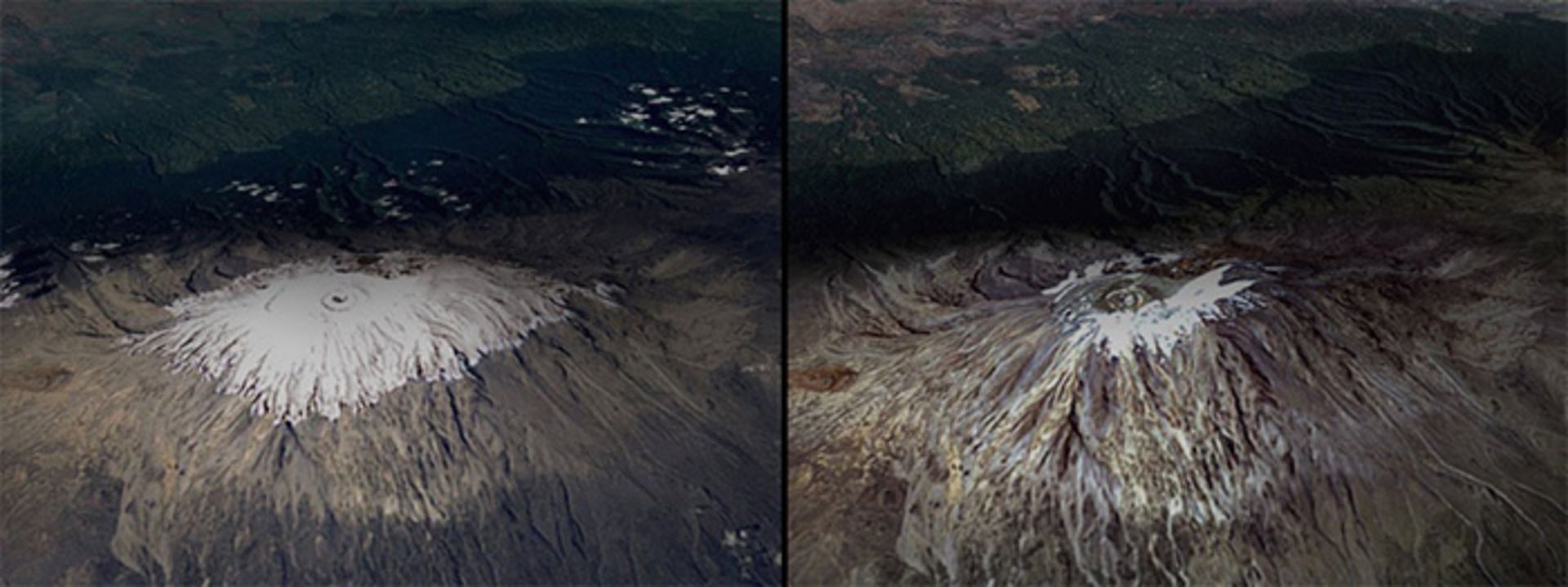 ذوب شدن برفها در اطراف قلّهی کلیمانجارو، تانزانیا... فوریه ۱۹۹۳- بعد: فوریه ۲۰۰۰