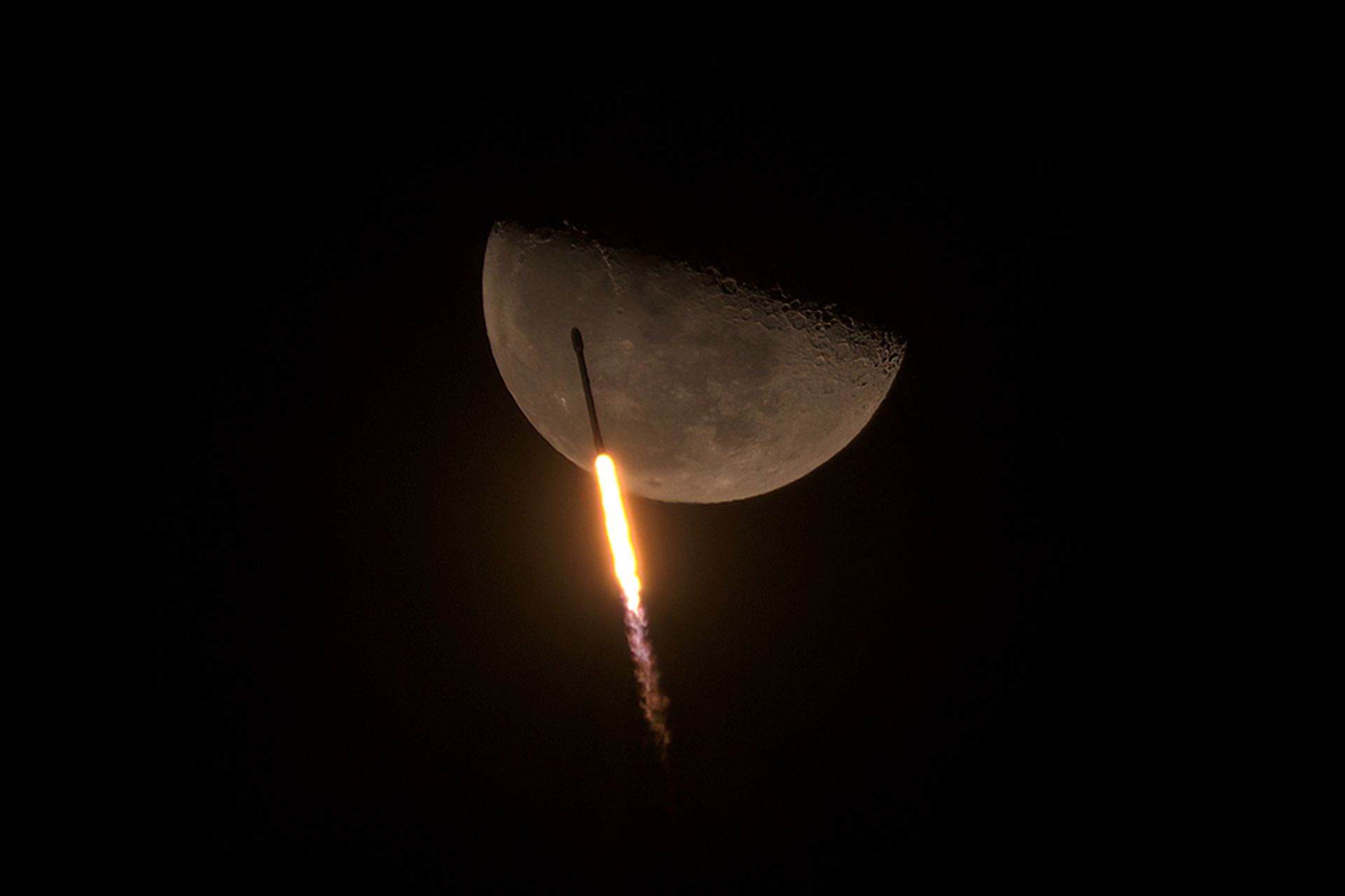 عبور فالکون ۹ (Falcon 9 Soars Past the Moon) از ماه اثر پل اکهارت