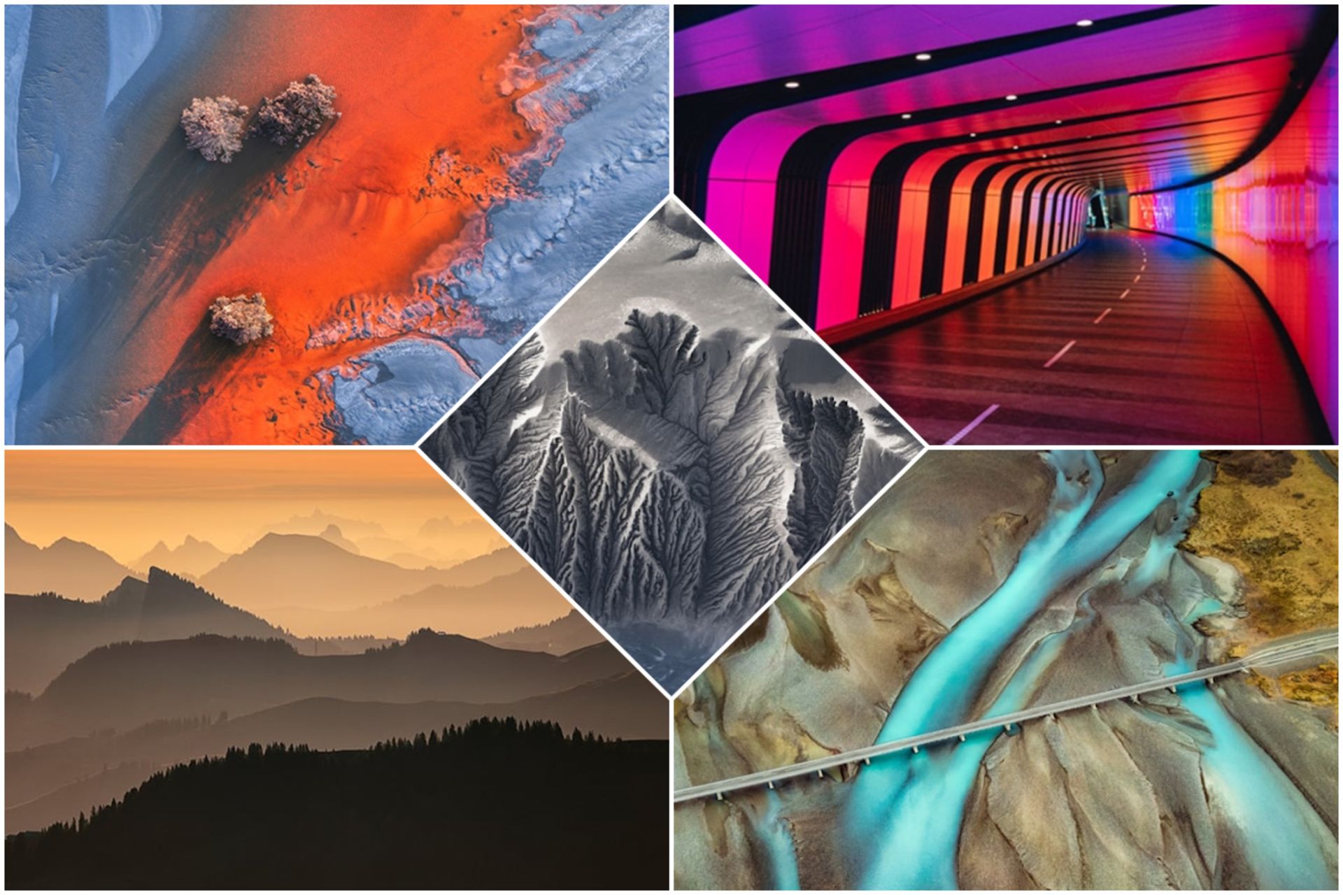 دهها میلیون سال است که آب ذوبشده از برف یخچال تیانشان این چشمانداز طبیعی را تحت حرکت پوسته زمین و فرسایش باد و باران شکل داده است. این تصویر حاصل 40 عکس ترکیب شده است. من با پهپاد خود این عکسهای نمای هوایی ۹۰ درجه را در ۴۰ نقطه مناسب (پنج ردیف و هشت ستون) از دره ثبت کردم تا نمای هوایی کامل دره را داشته باشم. طبیعت، یک هنرمند است و من را به یاد یک نقاشی انتزاعی میاندازد.