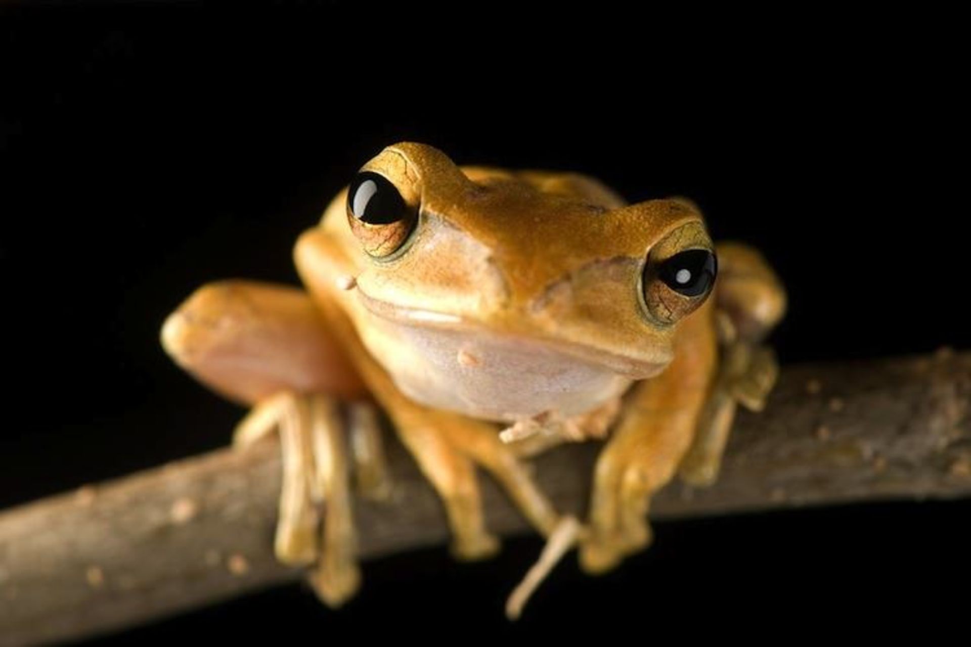 تصویری فوقالعاده از خیره شدن قورباغه درختی طلایی به دوربین.