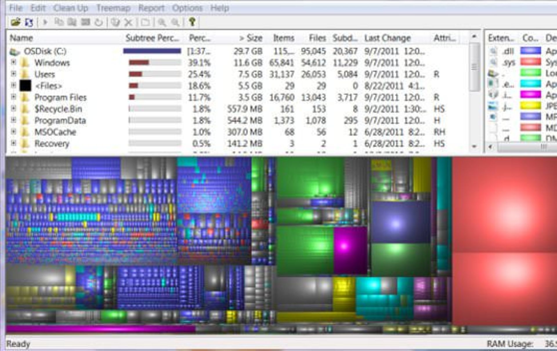 نرم افزار WinDirStat را هر ماه یک بار اجرا کنید و فایل های اضافی را پیدا نموده و حذف کنید. شما همچنین می توانید از نرم افزار CCleaner برای پاک کردن خودکار فایل های اضافی استفاده نمایید.