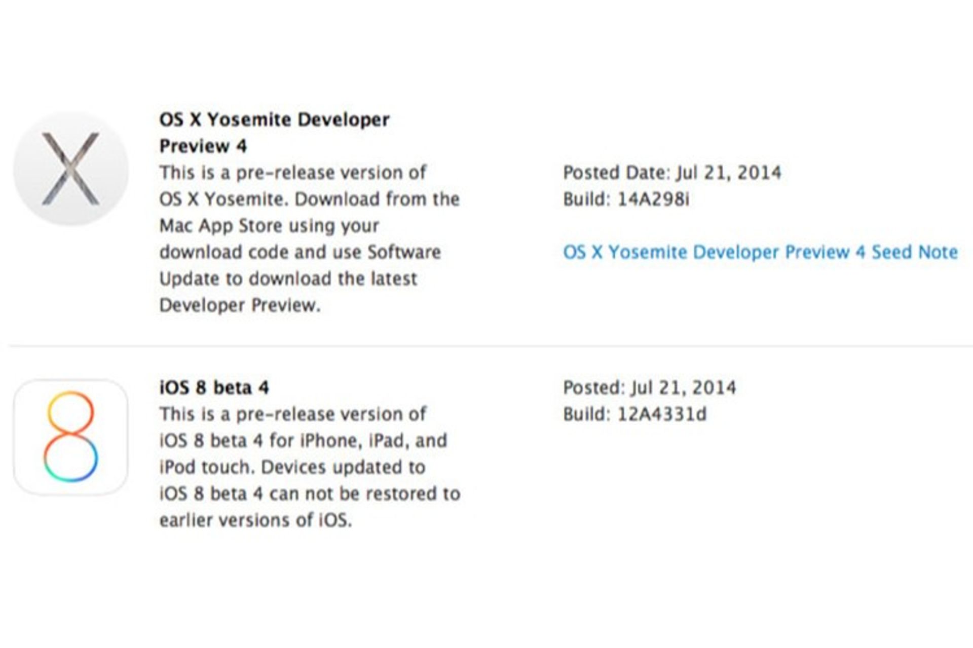 اپل نسخه آزمایشی چهارم از iOS 8 و OS X Yosemite را منتشر کرد