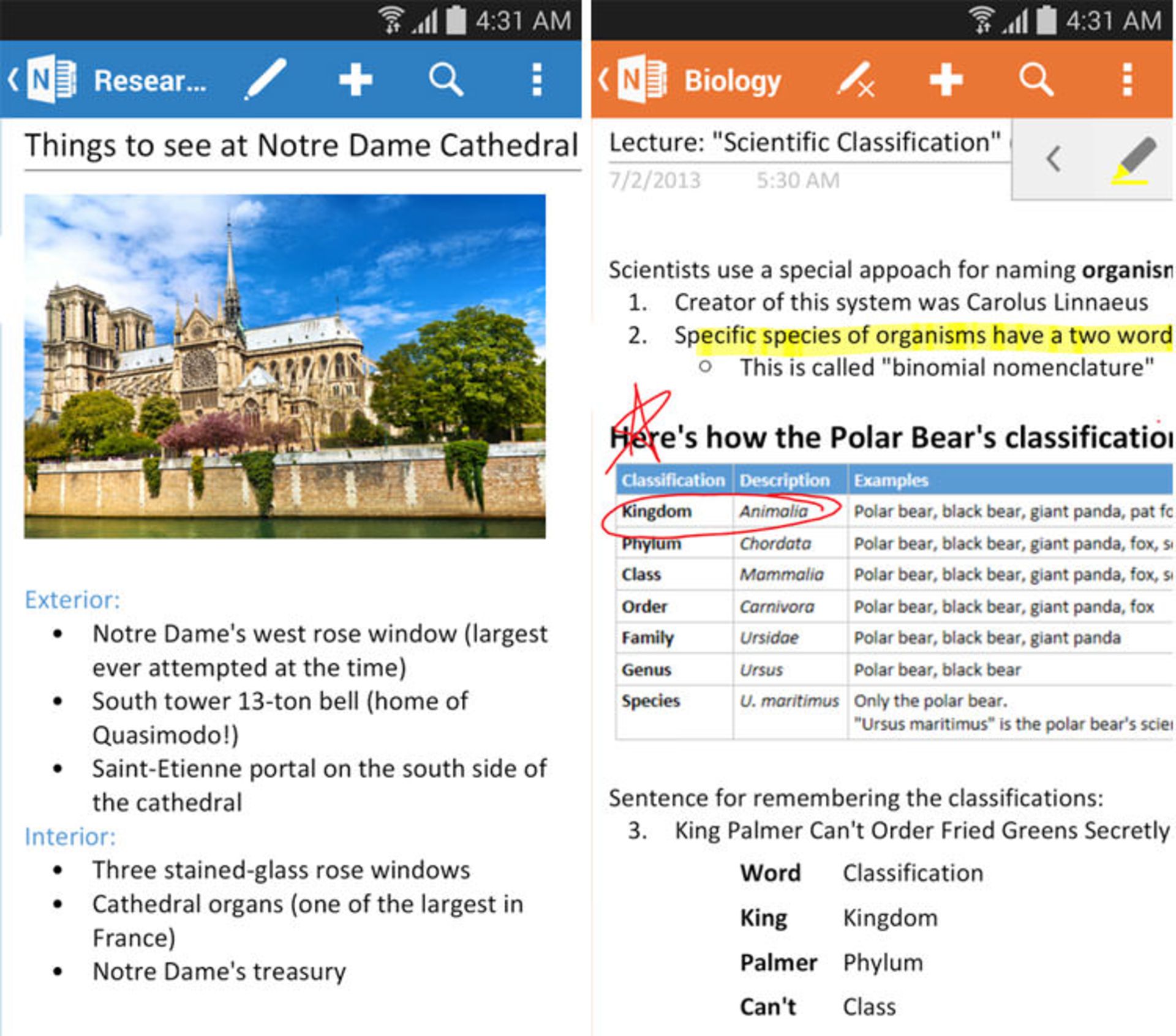 یادداشت برداری در موبایل مانند مبحث مرورگرها تنها از چند مدعی انگشت شمار برخوردار است و مابقی اپلیکیشنها معمولا از استانداردهای لازم برای رقابت با این چند مدعی برخوردار نیستند. OneNote یکی از چند اپلیکیشن اصلی و محبوب در زمینهی یادداشت برداری است که با امکانات بینظیری که در اختیار کاربران قرار میدهد، توانسته طرفداران پروپاقرصی را برای خود مهیا کند. این برنامه با دارا بودن قابلیتهایی همچون استفاده از عکس و صدا در یادداشتها، همگام سازی آنلاین و دسترسی به یادداشتها در هر مکان و هر زمان، وجود برچسب برای دستهبندی دقیق یادداشتها و ... موفق به جلب توجه بیش از ۵۰ میلیون کاربر (تنها در پلیاستور) شده است. اگر از اندروید ۴.۱ یا بالاتر برخوردارید، میتوانید از طریق لینکهای زیر OneNote را دانلود کنید.