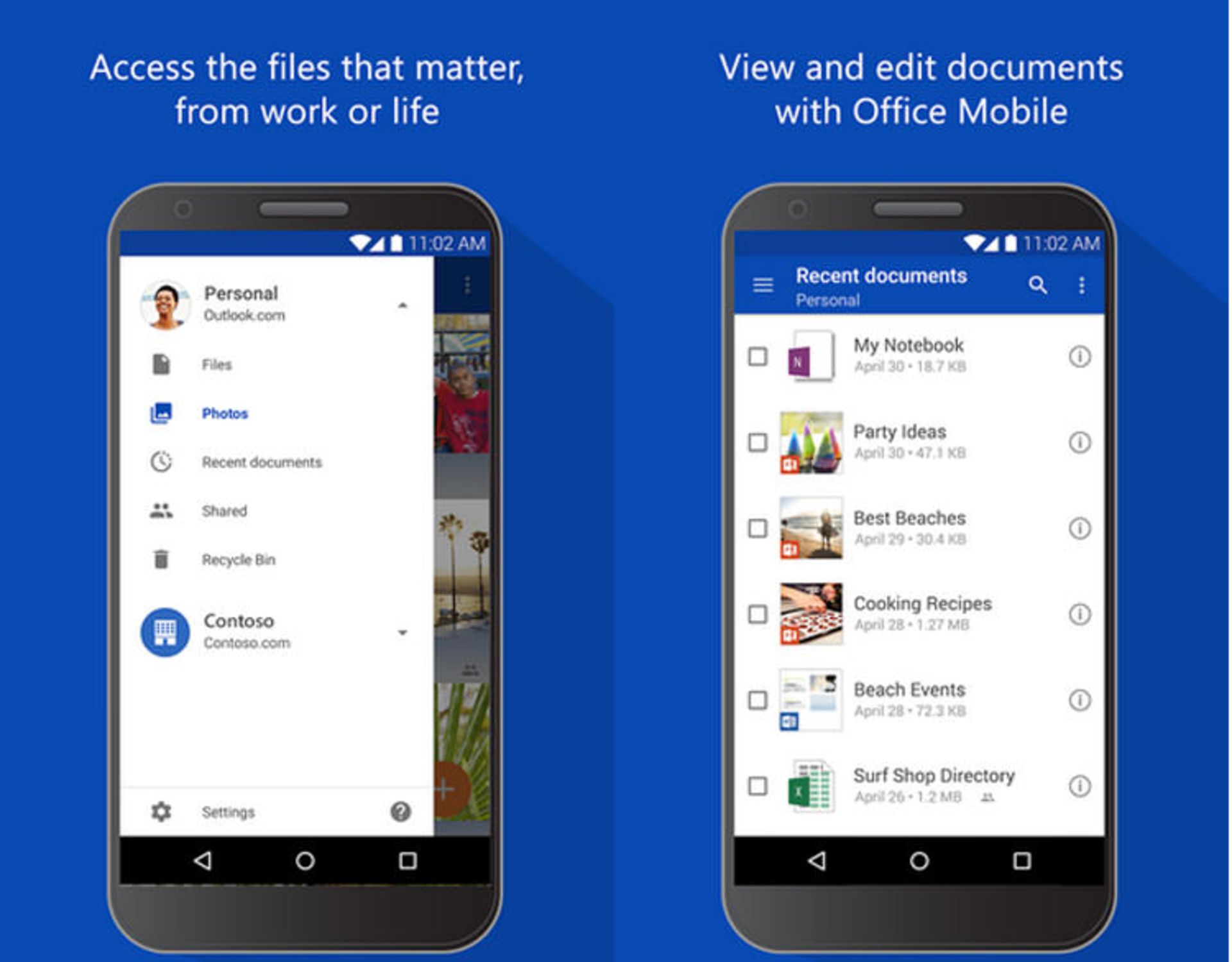 در کنار اپلیکیشن مدیریت ایمیل مایکروسافت، OneDrive یکی دیگر از اپلیکیشنهای محبوب و مهم مایکروسافت محسوب میشود که نسخهی اندرویدی آن نیز از همان ابتدا به دلیل محبوبیت بالای فضاهای ابری منتشر شد. این اپلیکیشن فضای ابری شما در سرورهای مایکروسافت را به گوشی شما متصل میکند تا علاوه بر آنکه همیشه و همه جا به فایلهای آنلاین خود دسترسی داشته باشید، بتوانید اطلاعات موجود در حافظهی تلفن خود مانند عکسها و شماره تلفنها را نیز به این صندوق آنلاین منتقل کنید. این اپلیکیشن نیز در پلیاستور دارای بیش از ۵۰ میلیون دانلود است و به طور کاملا رایگان از طریق لینکهای زیر قابل دانلود خواهد بود.