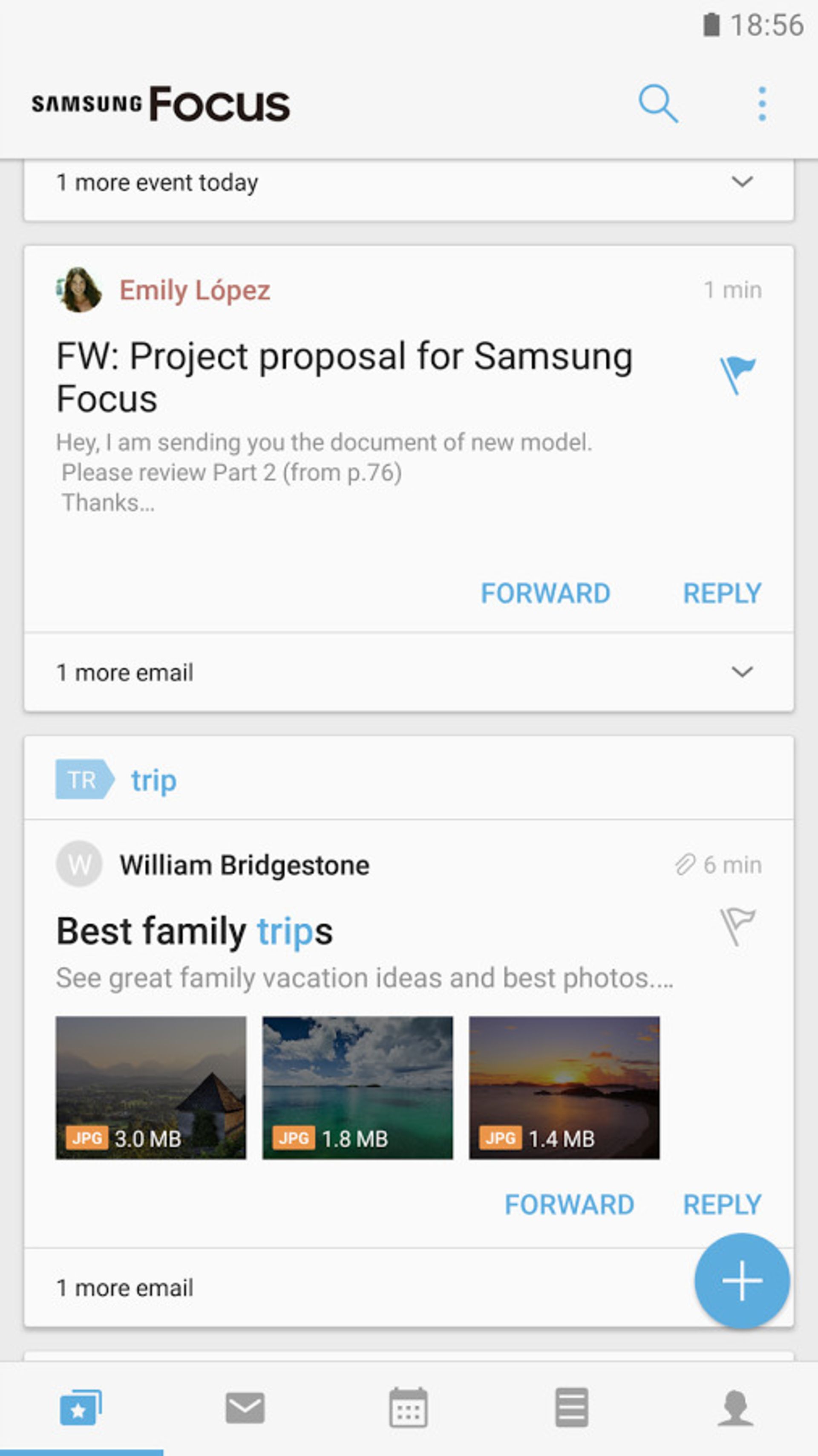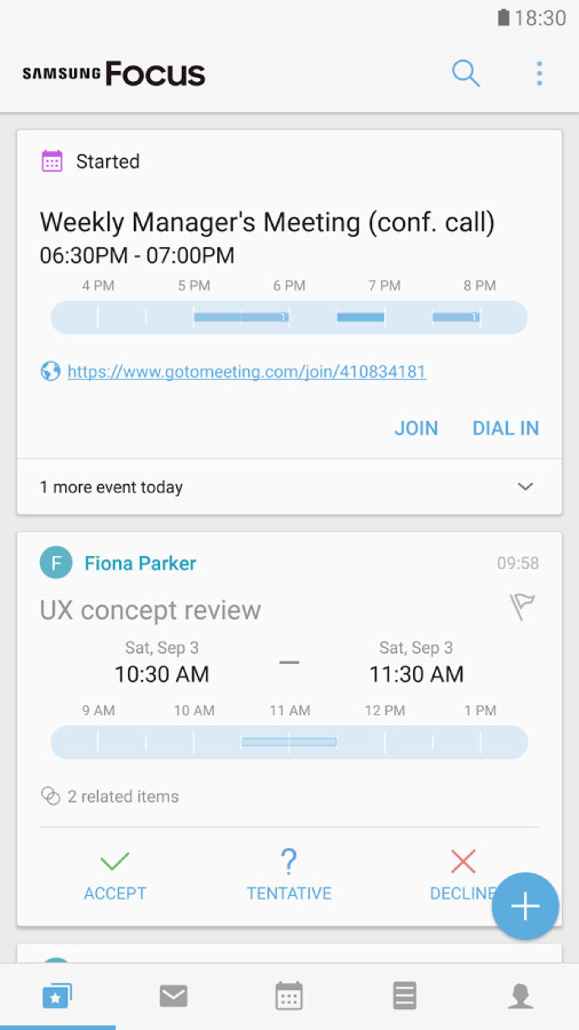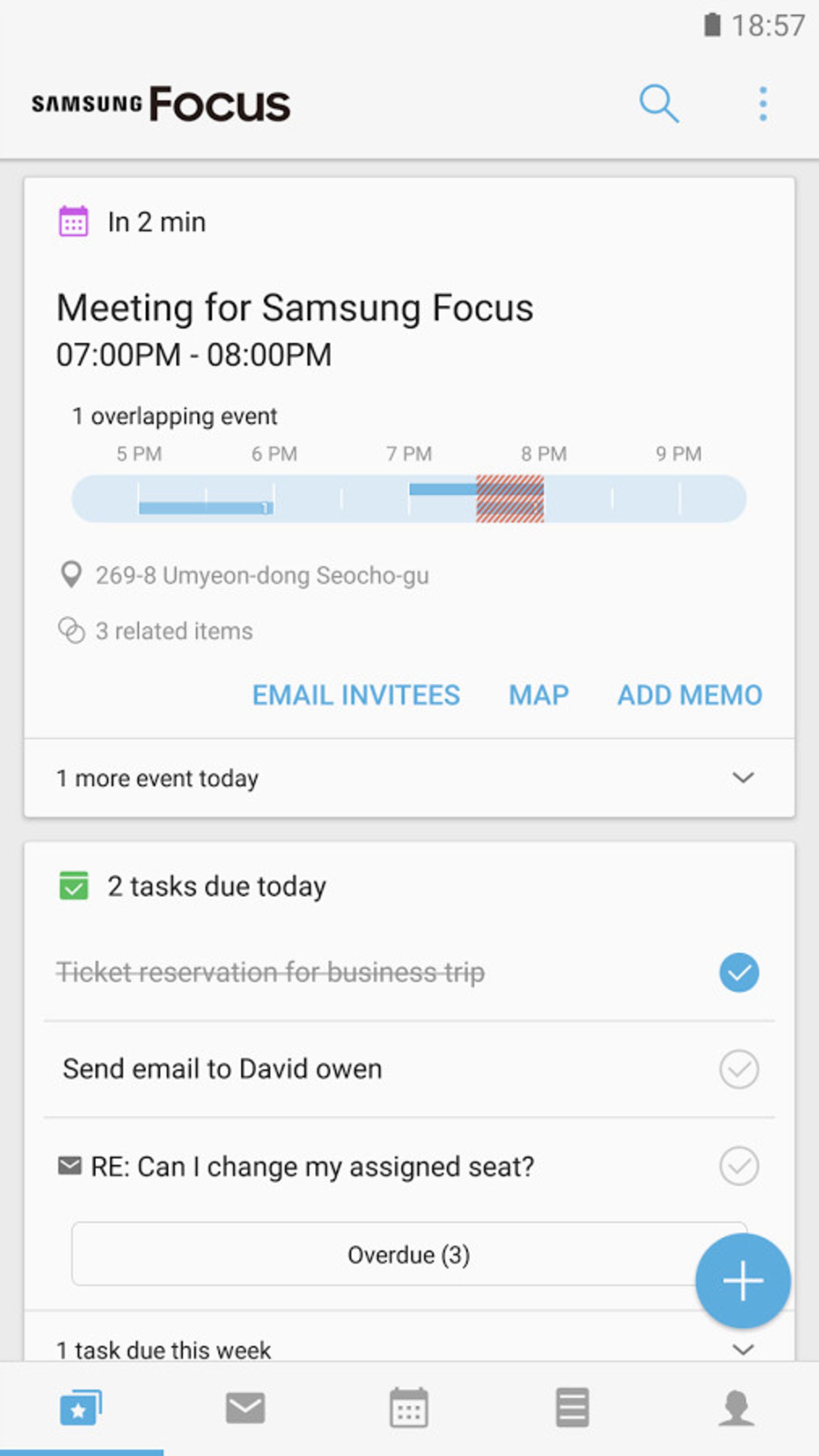اما همهی امکانات این اپلیکیشن به این جا ختم نمیشود و فوکوس، سیستم همگامسازی Direct Push را با Exchange ActiveSync، جستجوی یکپارچه (در سرویسهای ایمیل، رویدادها، یادداشت، وظایف و مخاطبان) و امکان اضافه کردن رویدادها یا وظایف از طریق ایمیل را نیز ارائه میکند.