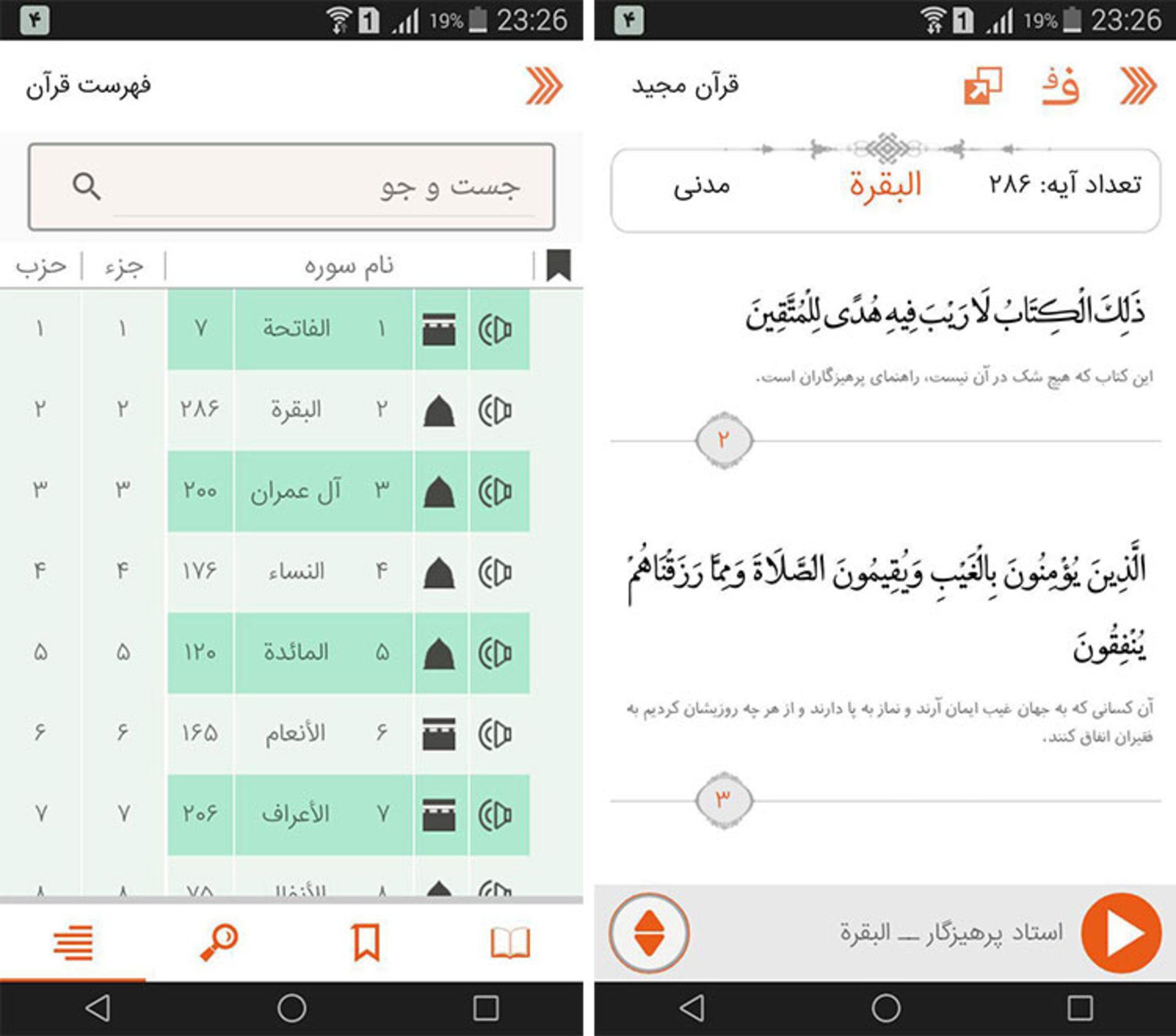 اپلیکیشن قرآن صوتی وصل: متن کامل قرآن و امکانات دیگر مذهبی - زوم اپ