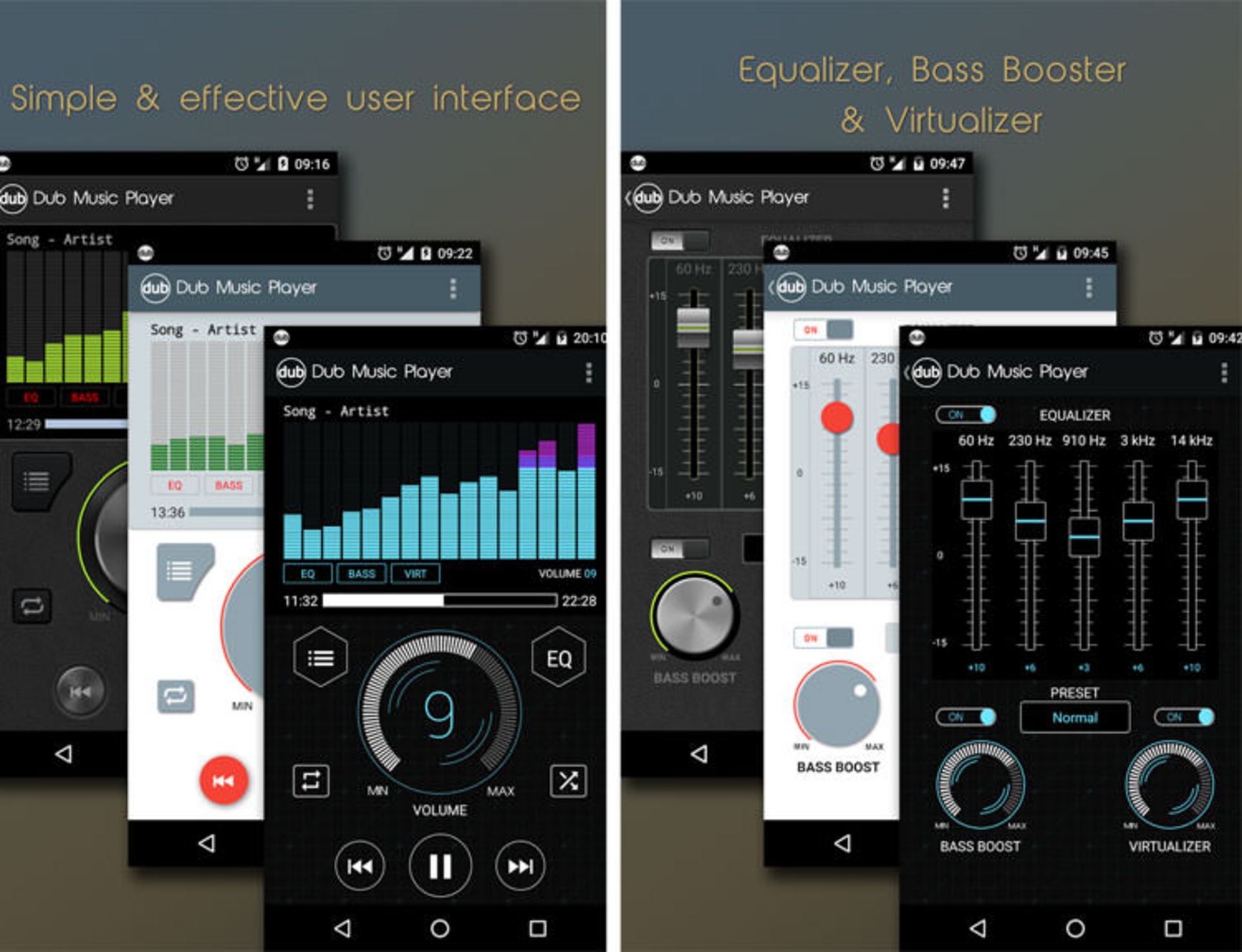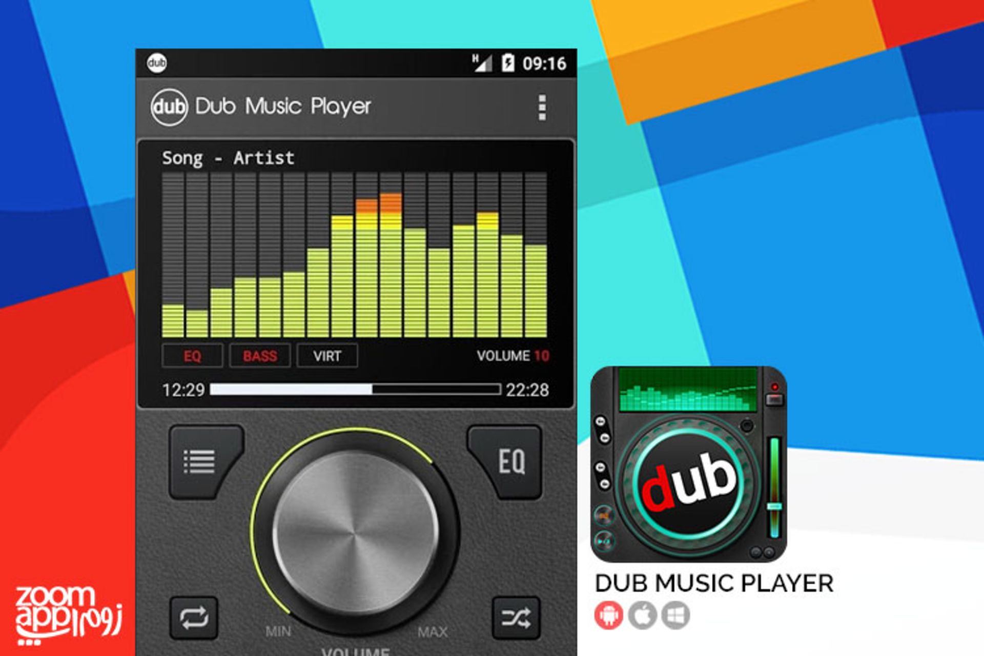 خوشبختانه پلیرهای قدرتمندی تاکنون برای گوشیهای اندرویدی منتشر شده است که از بین آنها میتوان به AMP Player, TTPOD یا JetAudio اشاره کرد. با این حال هنوز هم برنامههای جدیدی را در این زمینه مشاهده میکنیم که وجود رقیبهای قدر را پایان رویاپردازیهای خود ندانسته، و با پا گذاشتن به این عرصهی رقابت، مزد ریسک خود را گرفته و مورد توجه هزاران کاربر قرار گیرد. Dub Music Player یکی از این برنامهها است که وظیفهی پخش فایلهای موسیقی شما را دارد که این امر را، در محیطی بسیار زیبا و چشم نواز به انجام میرساند و با استفاده از چند المان جذاب و متفاوت، یک رابط کاربری جذاب را ارائه داده است.