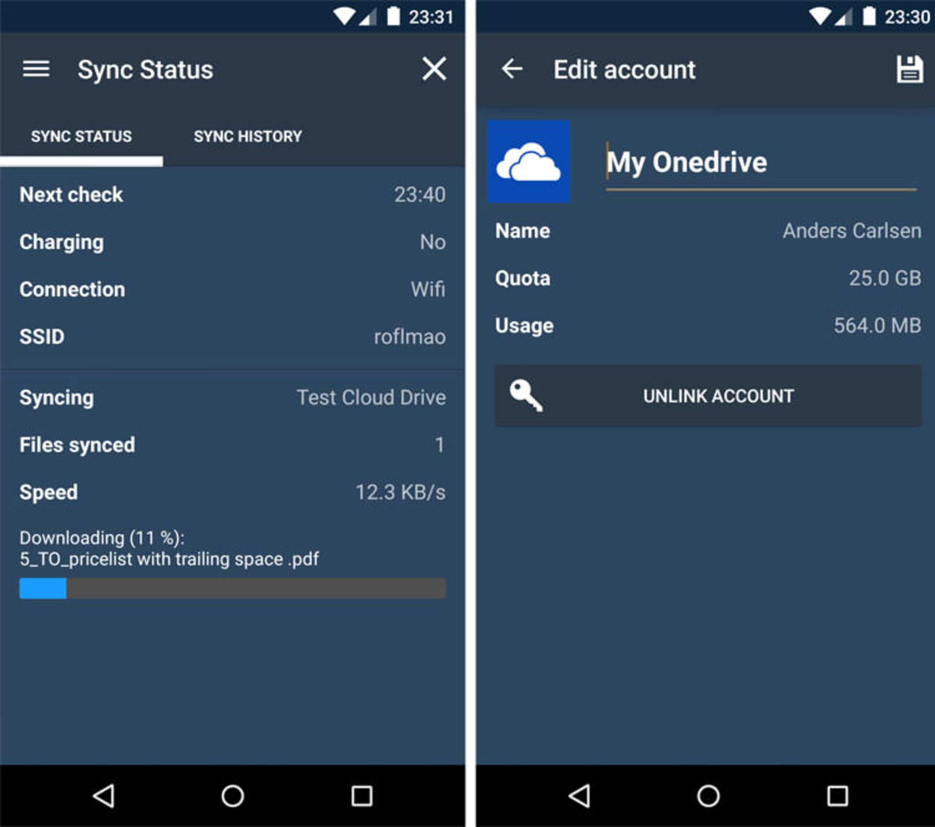در FolderSync می‌توانید فضاهای ابری بسیاری از جمله گوگل درایو، وان درایو، دراپ باکس و ... را به تلفن خود متصل کنید. بعد از این کار کافی است یک یا هر تعداد پوشه که تمایل به ذخیره‌ی آنلاین اطلاعات آن‌ها را دارید، به این برنامه معرفی کنید تا از این پس در بازه‌های زمانی مشخص، محتویات آن‌ها با محتویات موجود در سرورهای آنلاین مقایسه شود و در صورت وجود فایلی جدید، به‌طور خودکار موارد تازه به فضای ابری منتقل شوند. این موضوع بسیار کاربردی خواهد بود؛ برای مثال می‌توانید پوشه‌ی DCIM را به این برنامه معرفی کنید تا به‌صورت خودکار، عکس‌هایی که با گوشی ثبت می‌کنید، به فضای ابری منتقل شوند. برای دانلود این برنامه می‌توانید از لینک زیر استفاده کنید.