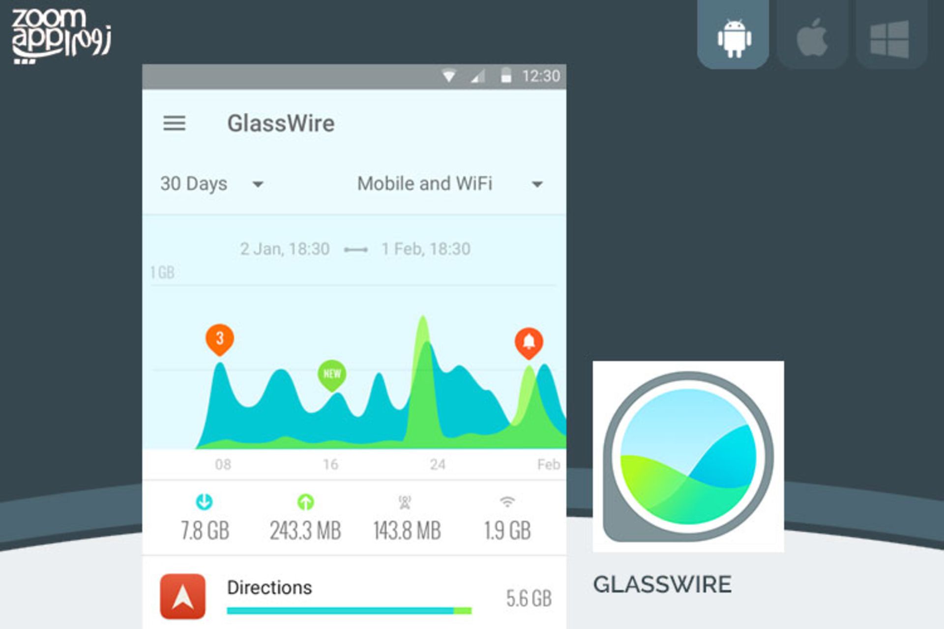 GlassWire اپلیکیشنی برای اندروید است که به کمک آن می‌توانید میزان مصرف اپلیکیشن‌ها از اینترنت را مشاهده و مدیریت کنید.
