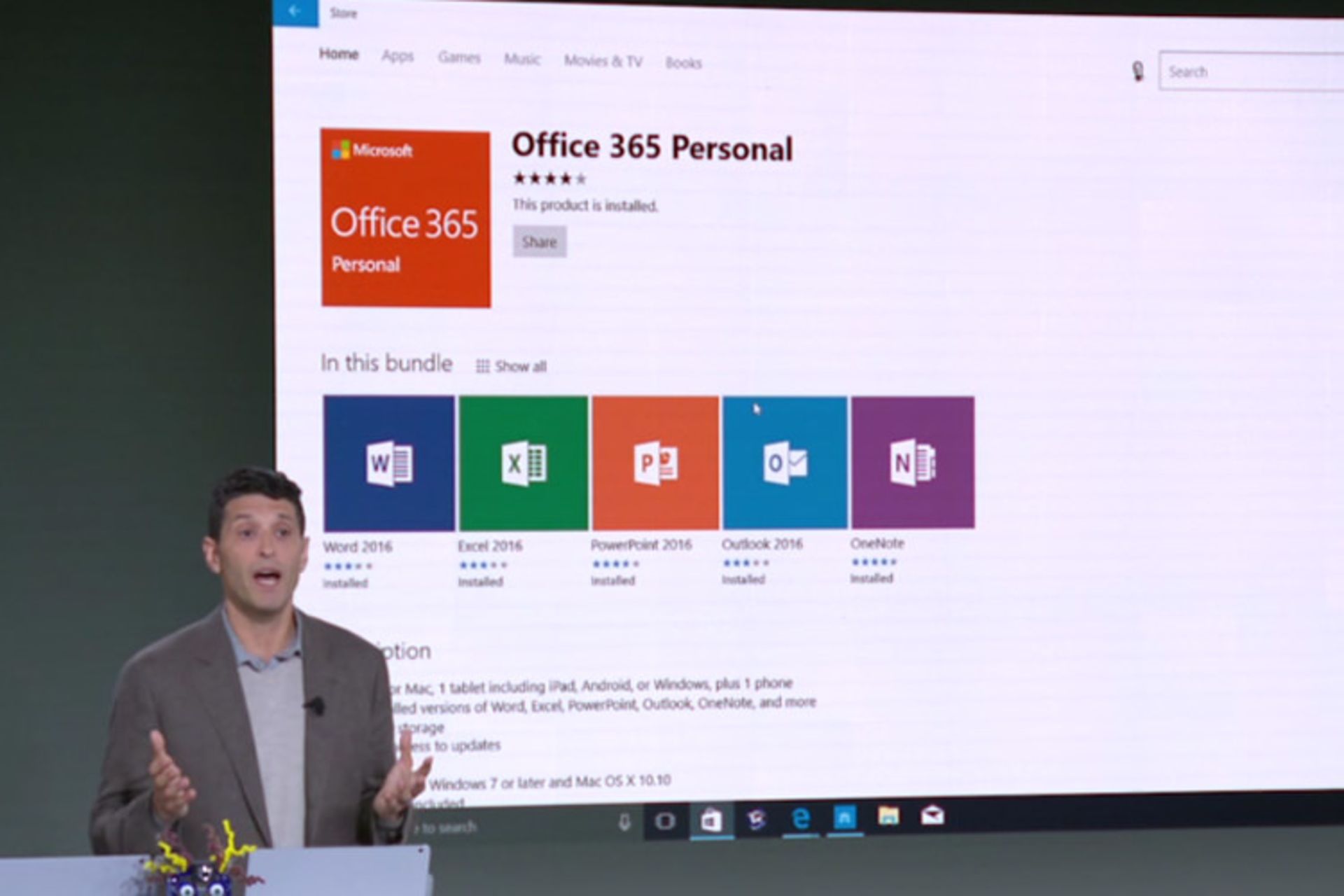 نسخهی دسکتاپ و کامل مجموعه نرمافزار آفیس مایکروسافت تا پیش از این از طریق استور ویندوز در دسترس نبود و کاربران تنها از طریق سایت مخصوص آفیس قادر به خریداری، دانلود و نصب این مجموعه بودند. مایکروسافت همچنین برای اولین بار امکان خرید اشتراک Office 365 بهصورت مستقیم از طریق استور را نیز فراهم کرده است.