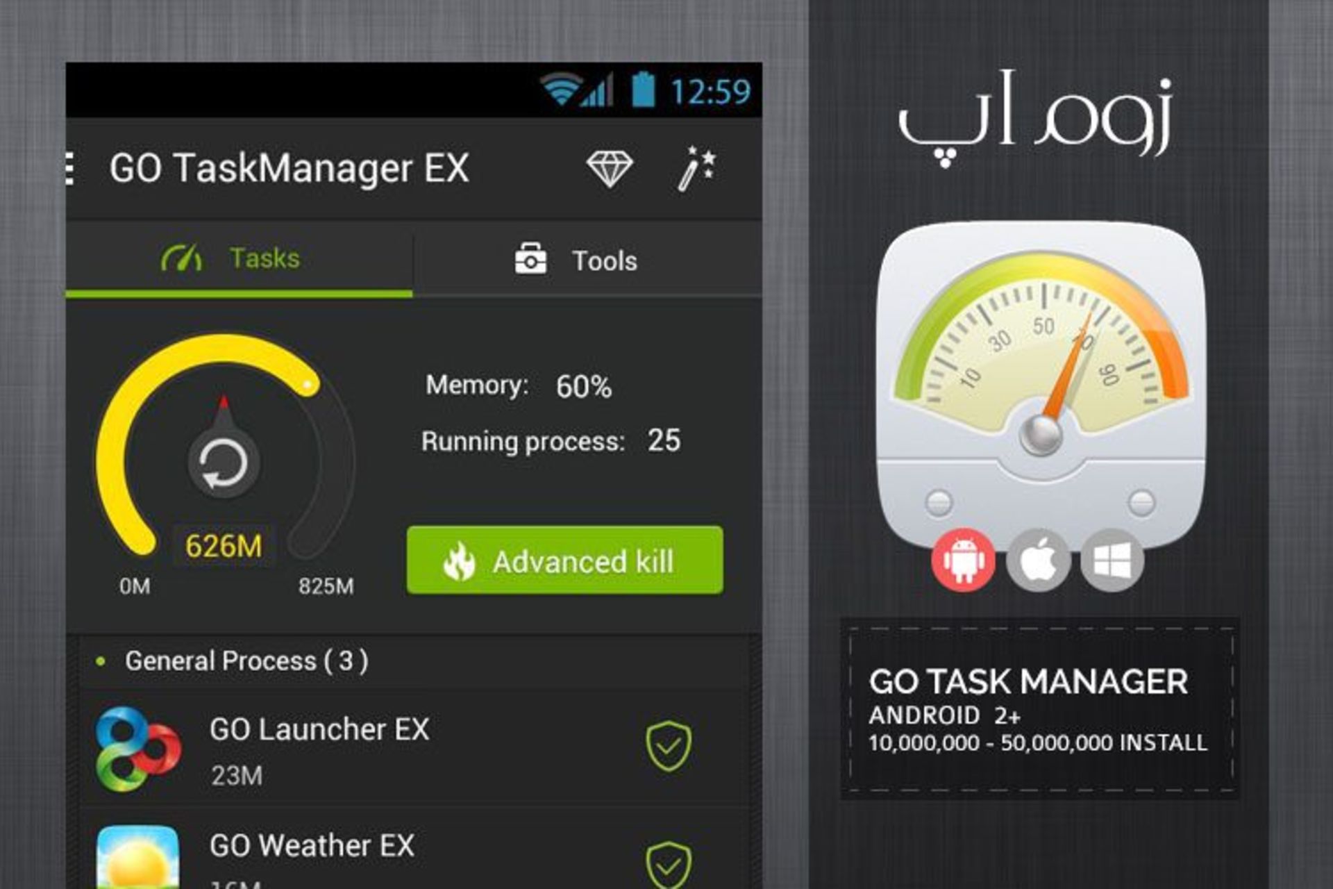 Go Task Manager نیز یکی دیگر از اپلیکیشنهای این گروه برنامهنویسی است که نام و آوازهی این اپلیکیشن نیز کمتر از سایر اپلیکیشنهای این گروه همچون GO SMS و ... نیست. این اپلیکیشن یکی از قویترین اپلیکیشنهایی است که میتوانید در زمینهی پاکسازی فضای رم و افزایش سرعت گوشی از آن استفاده کنید. این قدرت پردازشی بالا، در کنار رابط کاربری بینظیری که در این اپلیکیشن به کار گرفته شده است Go Task Manager را به یکی از محبوبترین اپلیکیشنهای اندروید در این زمینه تبدیل کرده است.