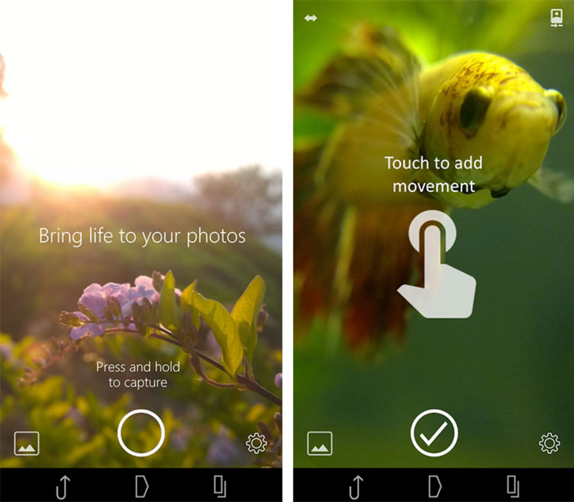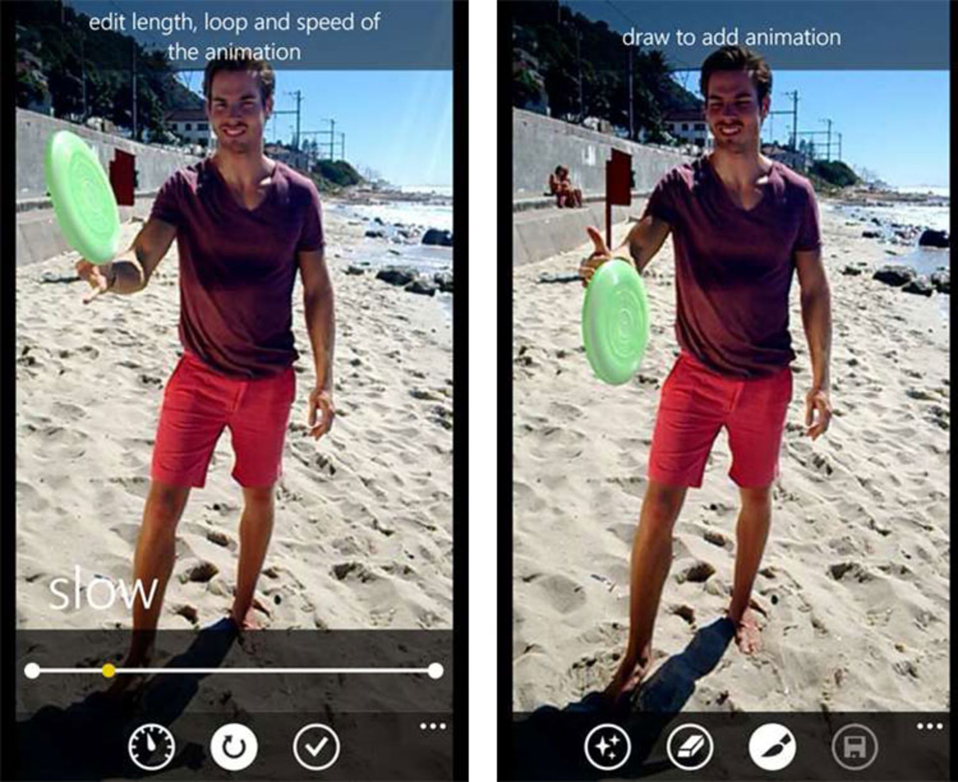 Lumia Cinemagraph را بهجرئت میتوان محبوبترین و جدیترین گزینه برای ساخت سینماگراف در ویندوزموبایل دانست. به کمک این برنامه میتوانید با ثبت ویدیو و سپس مشخص کردن بخشهای متحرک، سینماگراف خود را بسازید و به شکل GIF ذخیره کنید. امکان اشتراکگذاری مستقیم نتایج از داخل برنامه نیز در اپلیکیشن گنجانده شده است تا بتوانید بهسادگی تصاویر خود را به اشتراک بگذارید. این برنامه از ویندوزموبایل ۸.۱ و ۱۰ پشتیبانی میکند و میتوانید بهطور رایگان آن را دانلود کنید.