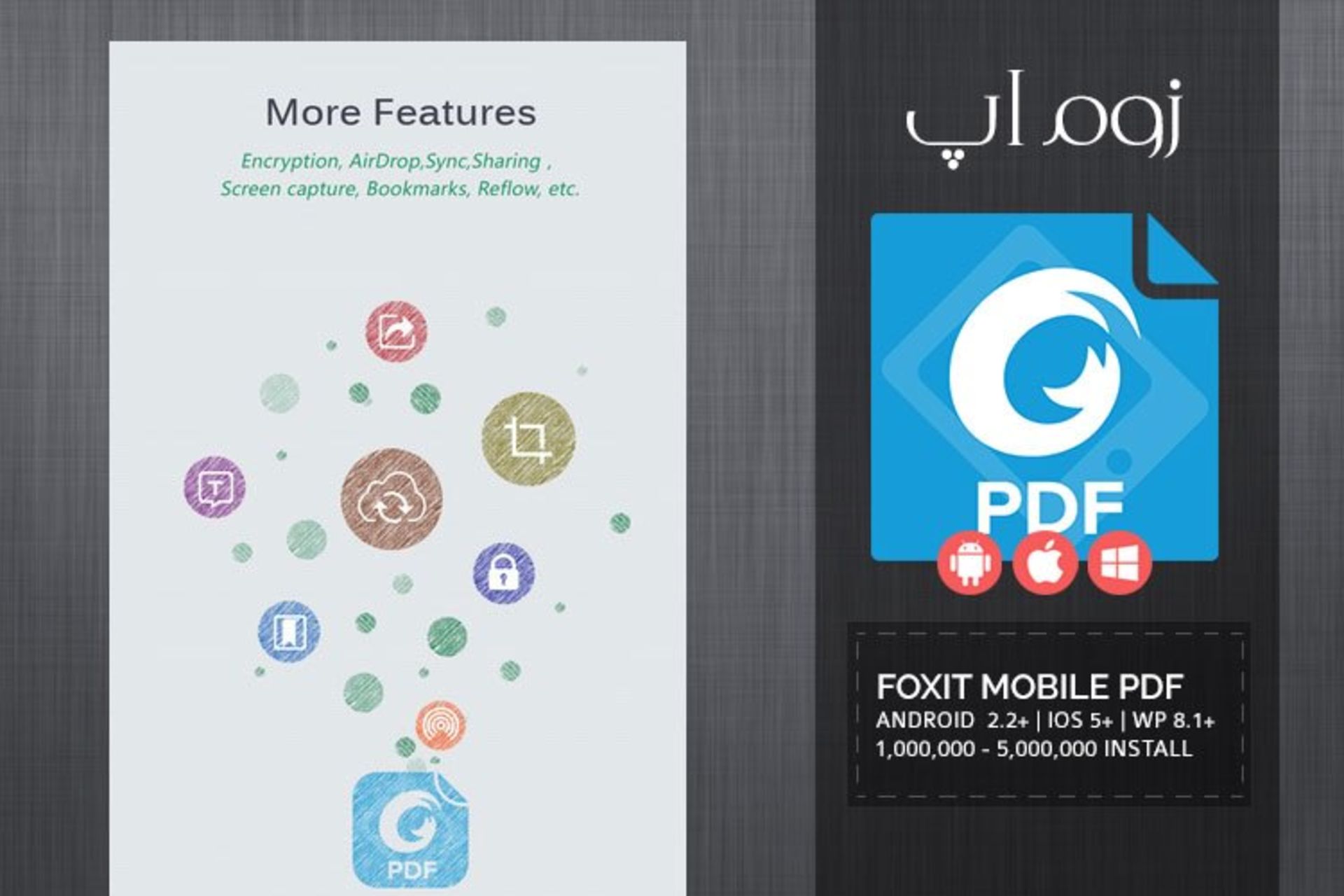 Foxit Mobile PDF نسخه‌ی موبایلی این نرم افزار صاحب نام است که برای هر سه پلتفرم اندروید، آی‌او‌اس و ویندوزفون منتشر شده است و تمام امکاناتی که برای مطالعه‌ی یک فایل PDF مورد نیاز کاربر است را در اختیار شما قرار می‌دهد، به طوری که برای مطالعه‌ی این فایل‌ها به هیچ‌وجه نیاز به یک کامپیوتر را احساس نخواهید کرد. باز کردن فایل PDF از حافظه‌ی داخلی و خارجی با سرعت بالا، مشاهده‌ی PDF‌های رمزدار، جستجو در متن، دسترسی به صفحات مختلف به وسیله‌ی شماره‌ی صفحه، دارا بودن چند حالت نمایش از جمله یک صفحه‌ای و پیوسته، امکان بزرگنمایی در صفحات و... از دیگر امکانات این اپلیکیشن کاربردی هستند. برای دانلود از لینک‌های زیر استفاده کنید.