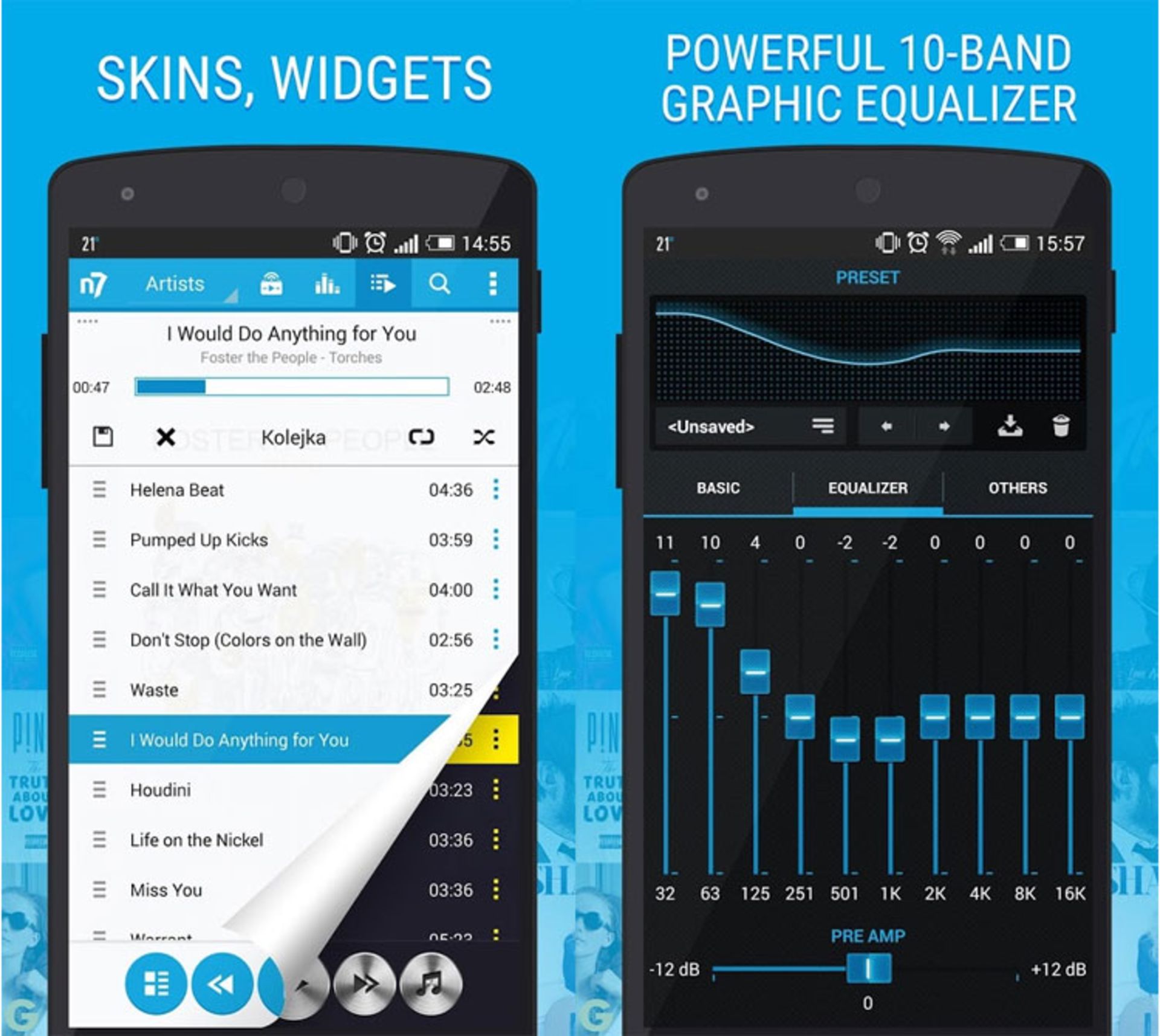 این اپلیکیشن که به جرات میتوان آن را جزو ده پلیر برتر گوشیهای موبایل دانست، از امکانات بسیار بالایی برخوردار است به طوری که در کنار ظاهر چشمنواز و حرفهای آن، یک پلیر موسیقی کمنظیر را به ارمغان آورده است. شما با کمک این اپلیکیشن قادر خواهید بود تمامی فرمتهای رایج صوتی را مانند mp3, mp4, m4a, ogg, wav, 3gp, mid, xmf, ogg اجرا کرده و با کمک اکولایزر قدرتمند آن بهترین کیفیت ممکن را در این فایلهای صوتی دریافت کنید. همچنین این اپلیکیشن دارای دو پوستهی روشن و تاریک و قابلیت انتخاب رنگهای دلخواه برای بخشهای مختلف آن است که میتوانید با توجه به محیط کلی گوشی خود، بهترین هماهنگی را بین این پلیر با دیگر بخشهای گوشی ایجاد کنید. رابط کاربری منحصر به فرد بر اساس OpenGL و مولتیتاچ، اکولایزر گرافیکی حرفهای، افکتهای ویژه (bass boost ,sound virtualization (SRS/Dolby Surround، دانلود اتوماتیک و دستی تصویر آلبوم و خواننده، ویرایش تگ برای تمامی فرمتهای پشتیبانی شده، دارای ویجت برای هوماسکرین و لاکاسکرین، کنترل موزیک، پشتیبانی از لیستهای پخش و... از دیگر ویژگیهای این اپلیکیشن محبوب و کاربردی هستند. برای دانلود نسخهی رایگان این اپلیکیشن از لینکهای زیر استفاده کنید.