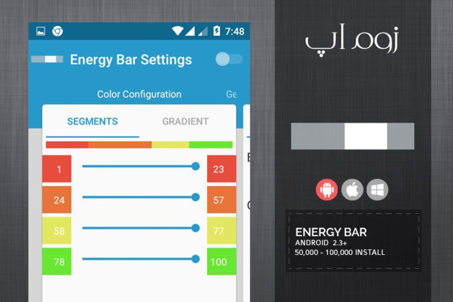 زوماَپ: اضافه کردن یک نوار رنگی به نوار اعلان برای نمایش میزان باتری با Energy Bar