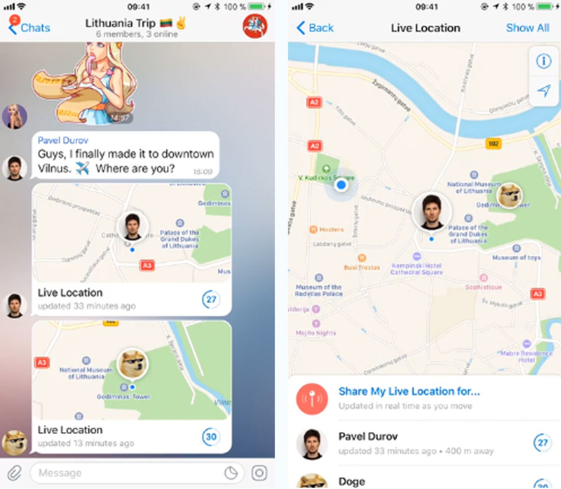 توسط این امکان جالب از این پس میتوانید موقعیت مکانی خود را بهصورت زنده با دوستانتان به اشتراک بگذارید؛ به این صورت که مخاطب شما میتواند بهصورت لحظهای، موقعیت مکانی خود را روی نقشه مشاهده کند؛ بدین ترتیب دیگر نیازی به ارسال دستی توسط شما نیست. این ویژگی به خصوص برای زمانهایی که قصد ملاقات یکدیگر را دارید کاربردی خواهد بود و میتواند در زودتر پیدا کردن یکدیگر به شما کمک کند. برای استفاده از این امکان کافی است به بخش Location رفته و گزینه ‘Share My Location for…’ را لمس کنید