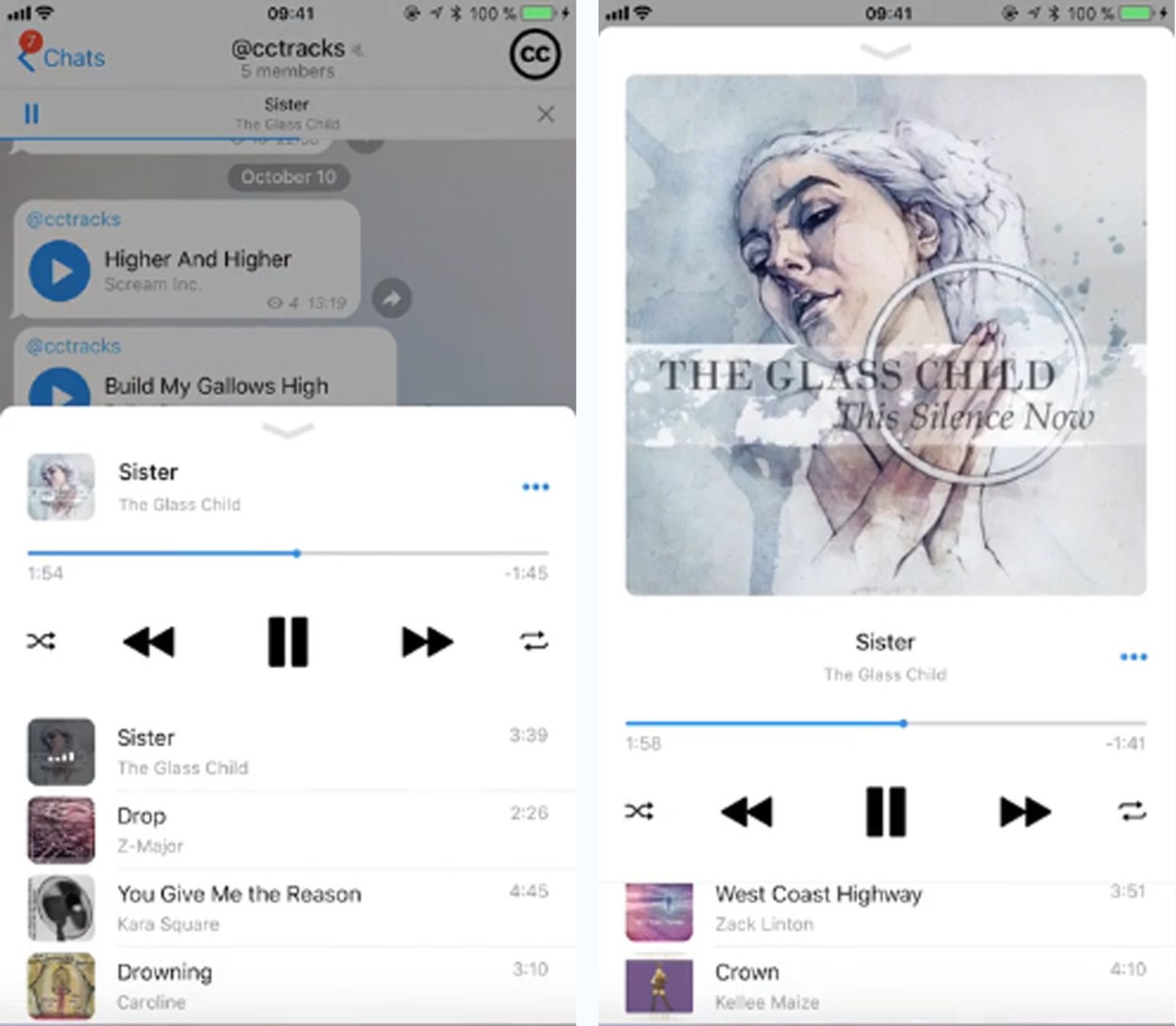 پلیر داخلی جدید در نسخهی ۴.۴ کاملا بازطراحی شده است و هم اکنون می توانید پلیر زیباتری را با امکانات بیشتر در اختیار داشته باشید. با اضافه شدن پلیلیست به پلیر داخلی نیز از این پس میتوانید مانند یک موزیکپلیر حرفهای در تلگرام به گوش دادن موسیقیهای خود بپردازید.