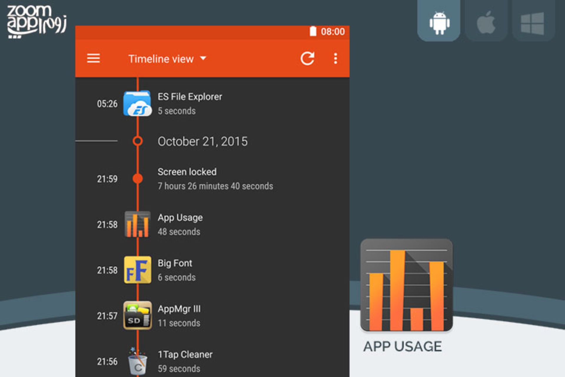 برنامه App Usage: چند ساعت با هر اپلیکیشن کار میکنید؟ - زوم اپ