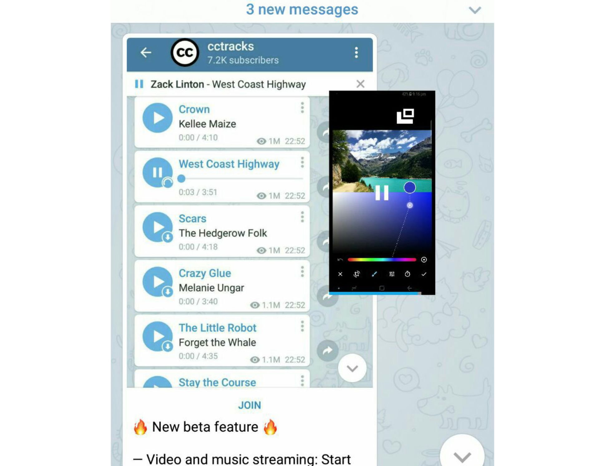 با این ویژگی جذاب از حالا قادر خواهید بود بعد از اجرای یک ویدیو، با لمس آیکون مربوطه، پنجره پخش ویدیو را به یک پنجره کوچک و شناور تبدیل کنید تا همزمان با آنکه در محیط تلگرام چرخ میزنید، پخش ویدیو نیز ادامه پیدا کند.