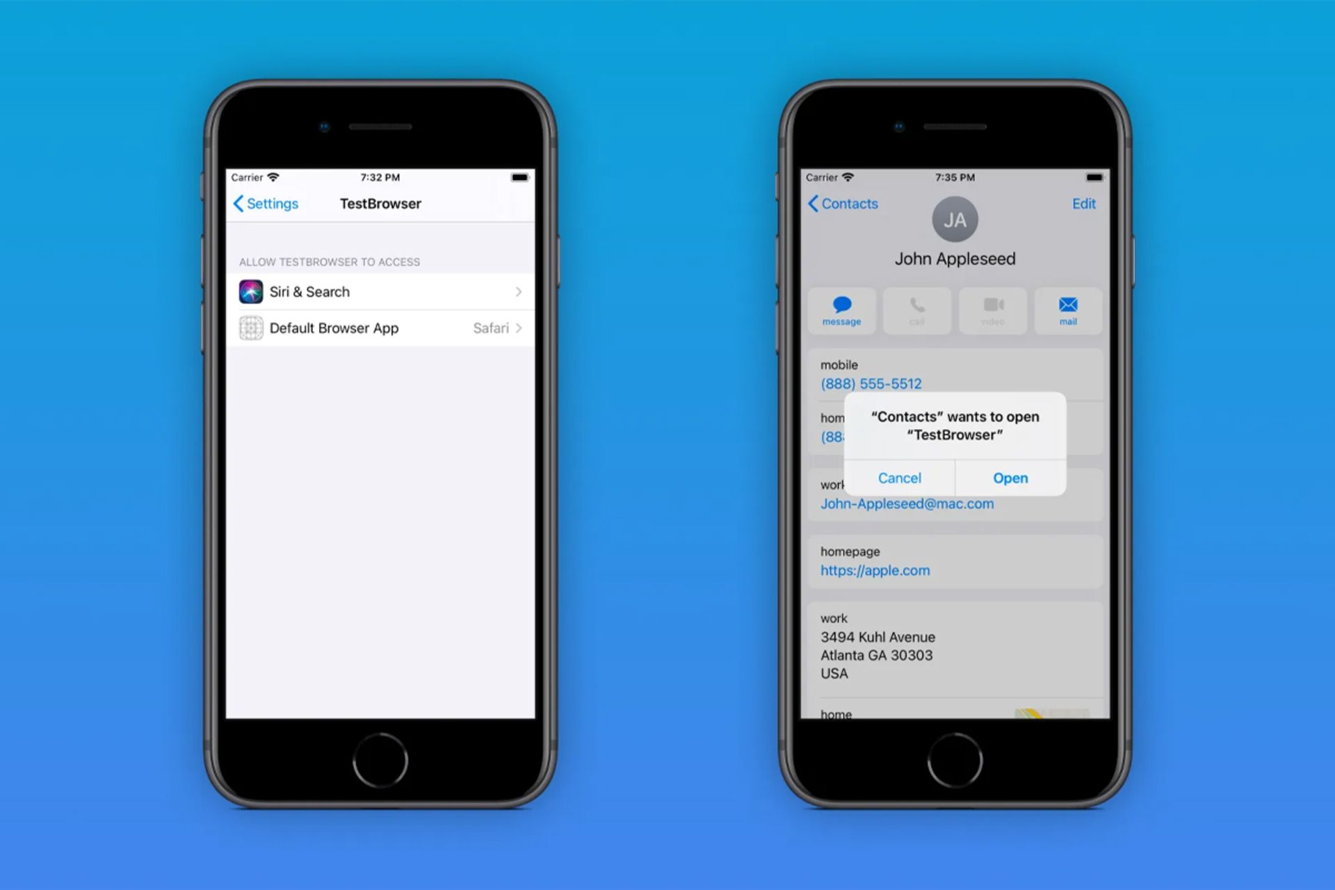 هر زمانیکه کاربر لینک HTTP یا HTTPS را باز کند، سیستم بهصورت خودکار مرورگر وب پیشفرض iOS را فراخوانی میکند؛ زیرا آن اپلیکیشنِ ویژه، به دروازهی اصلی کاربر برای ورود به اینترنت تبدیل میشود. اپل خواستار این است که اپلیکیشنهای جستوجوی وب معیارهای کاری خاصی داشته باشند تا بتوانند از حریم خصوصی کاربر محافظت و دسترسیِ درست به منابع اینترنتی را تضمین کنند.