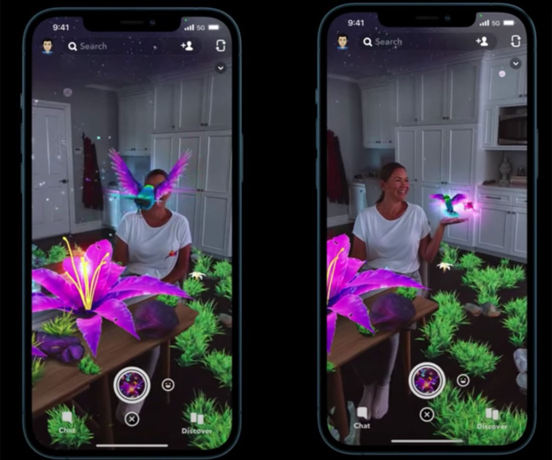این ویژگی به اپلیکیشنهایی که از واقعیت افزوده برای نشاندادن عناصر مجازی در دنیای واقعی استفاده میکنند، اجازه میدهد این کار را به دقیقترین حالت ممکن انجام دهند؛ زیرا اکنون گوشیهای آیفون دقیقا میدانند که در هر فضا هر وسیله کجا قرار گرفته و اندازهی واقعی آن چقدر است. اسنپچت لنزهایی اختصاصی را به کاربرانش ارائه میدهد که میتوانند با کمک دوربین گوشی آیفون ۱۲ پرو، هزاران سوژهی واقعیت افزوده را در لحظه رندر کنند.