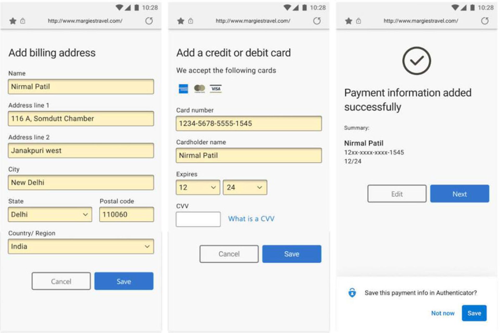 اینجا است که سرویس تکمیل خودکار مایکروسافت بهعنوان افزونه از برنامه Microsoft Authenticator وارد عمل میشود. این افزونه کاری انجام میدهد که مرورگرها حین تکمیل فرمها بهدست کاربران، ذخیرهسازی و پرکردن خودکار آنها را در دفعات بعدی به کاربران پیشنهاد میدهند. درحقیقت، این ویژگی از قبل بهصورت استاندارد در مرورگر Microsoft Edge وجود داشت؛ اما هماکنون در سایر پلتفرمها و دستگاهها نیز حال گسترش است.