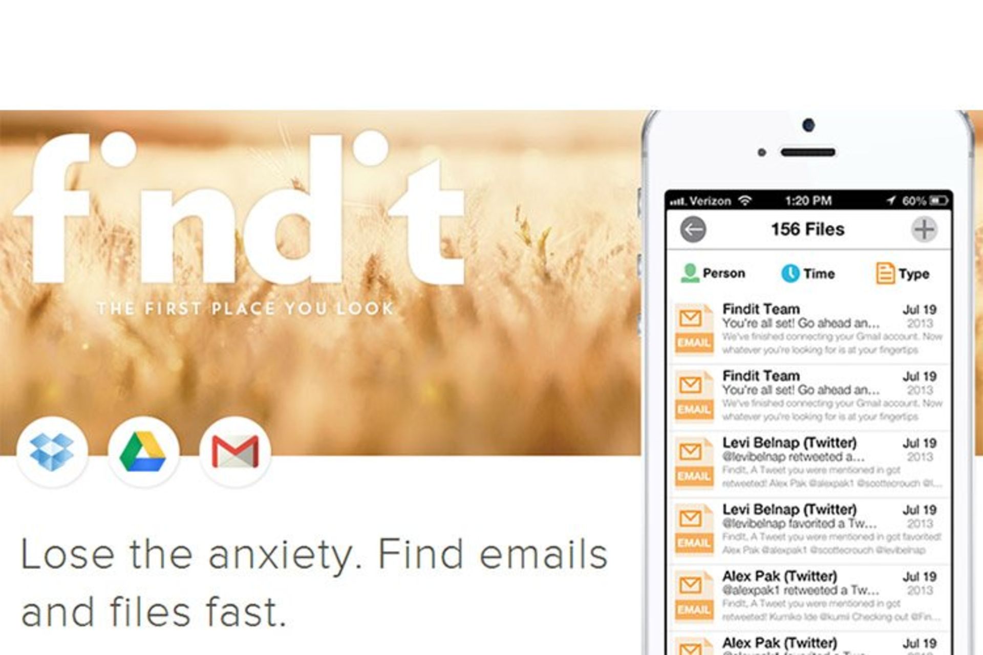 FindIt اپلیکیشنی است که چند ماه پیش اولین بار برای iOS ارائه شد، اما هماکنون برای اندروید نیز عرضه شده است. همانطور که نام این اپلیکیشن گویاست (آن را پیدا کن :FindIt)، با استفاده از آن میتوان اطلاعات مورد نظر را در انواع سرویسهای ابری و ایمیلها همچون جیمیل،گوگل درایو و دراپباکس جستوجو کرد.