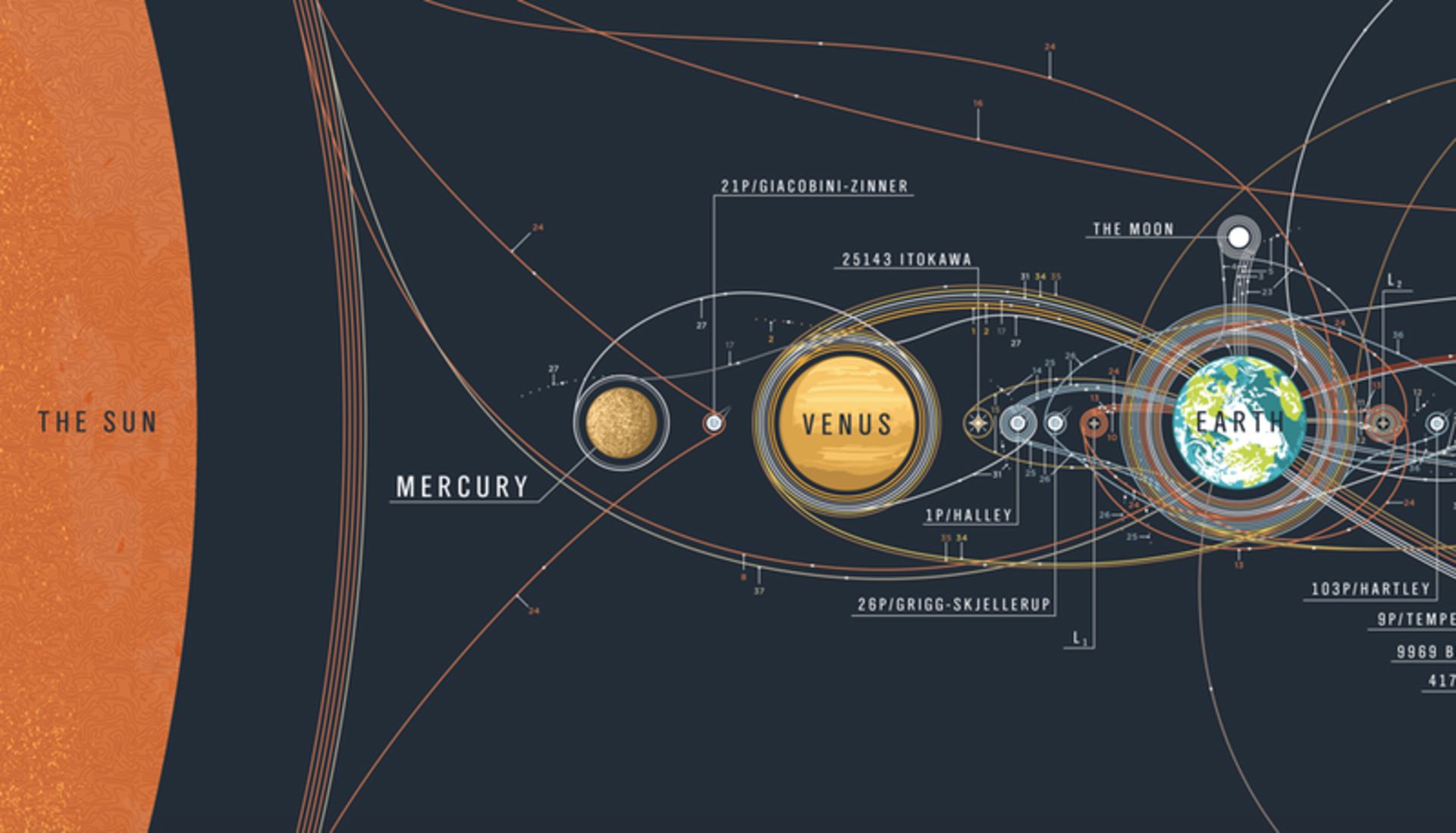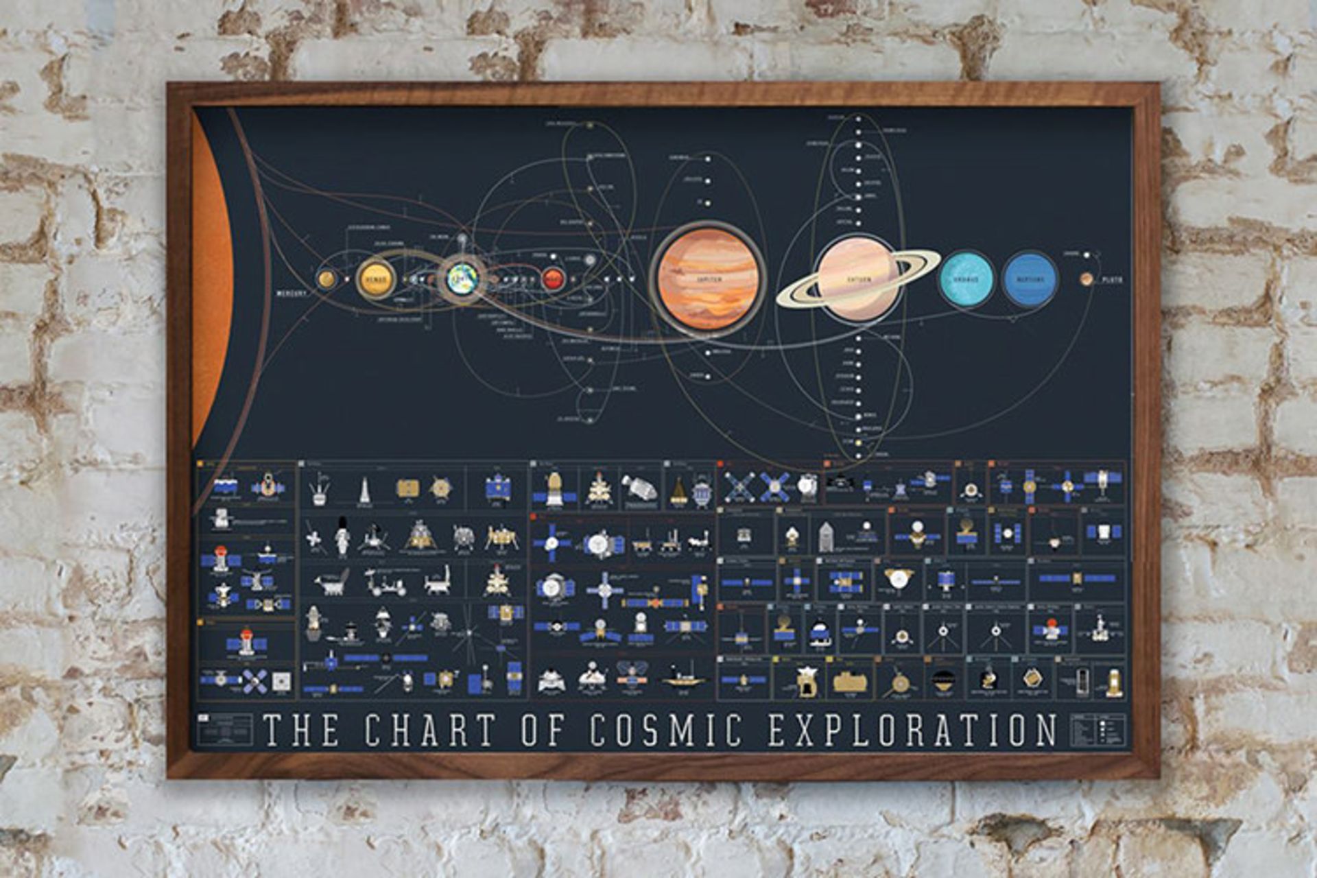 این تصویر که در آزمایشگاه Pop Chart تهیه شده، همه مدارگردها، کاوشگرها، مریخ نوردها و باقی وسیلههایی را که برای کاوش سطح سیارههای دیگر به فضا پرتاب شدهاند نشان میدهد. البته باید در نظر داشته باشید که در این پوستر تنها سفرهای فضایی که موفق انجام شدهاند قابل مشاهده است.