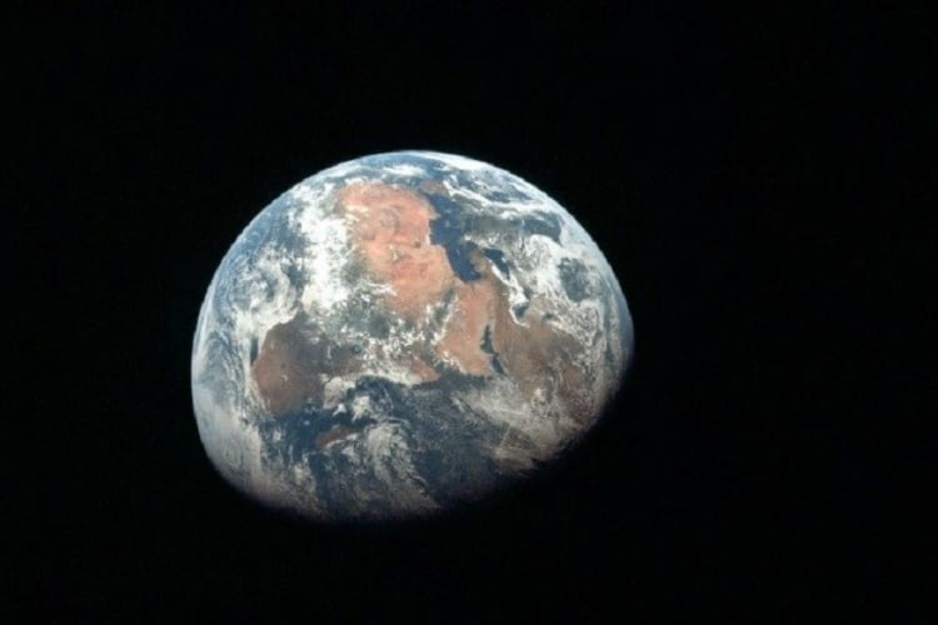 عکسی که در آن سیارهی ما به تنهایی در اعماق تاریک فضا غوطهور است و در تاریخ ۲۰ جولای ۱۹۶۹ گرفته شده است. منظرهای از آفریقا در فاصلهی ۱۵۸۰۰۰ کیلومتری؛ زمانی که نیل آرمسترانگ (Neil Armstrong)، مایکل کولینز (Michael Collins) و باز آلدرین (Buzz Aldrin) در مسیر کرهی ماه بودند. منبع تصویر سایت ناسا است.