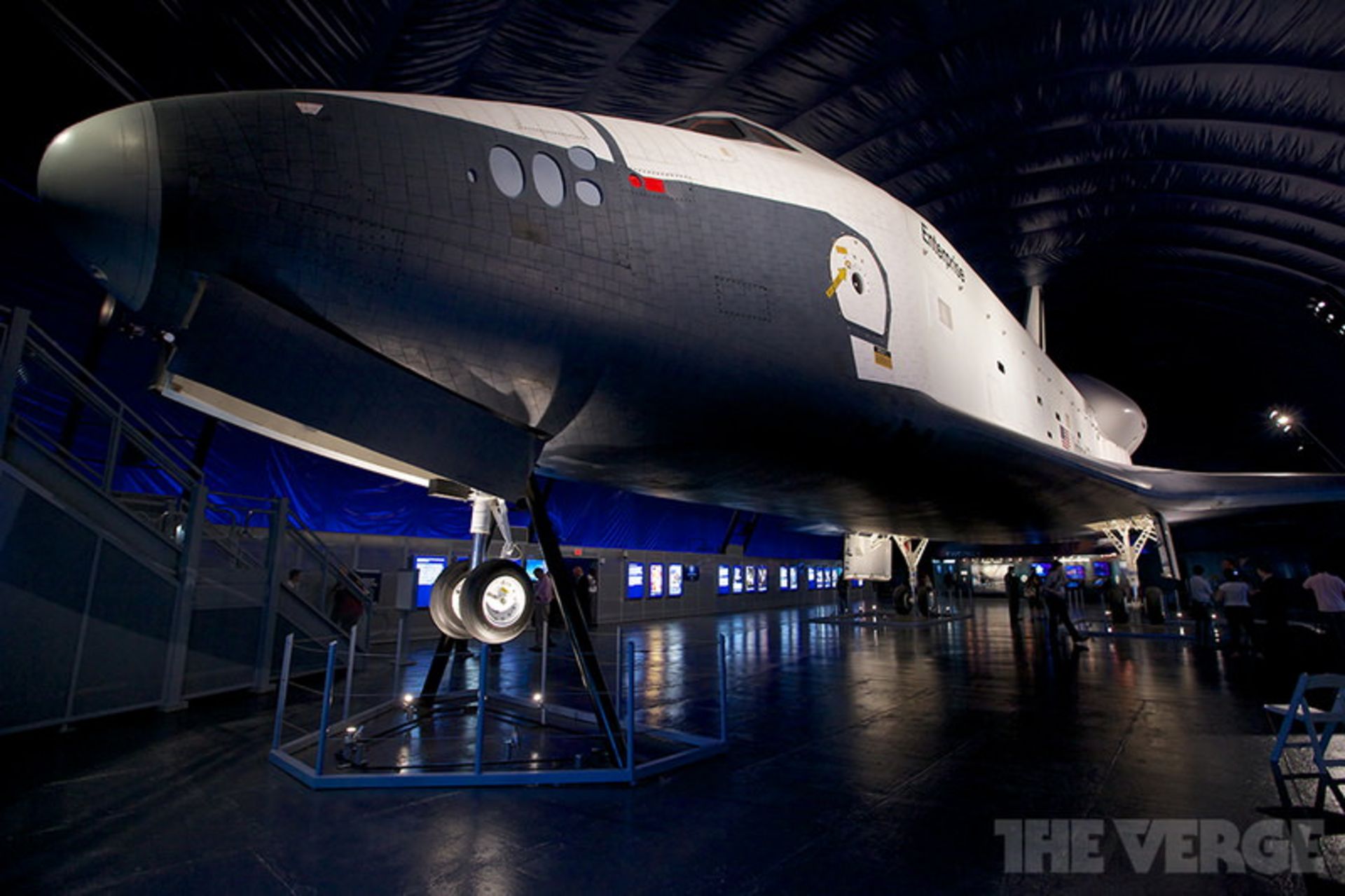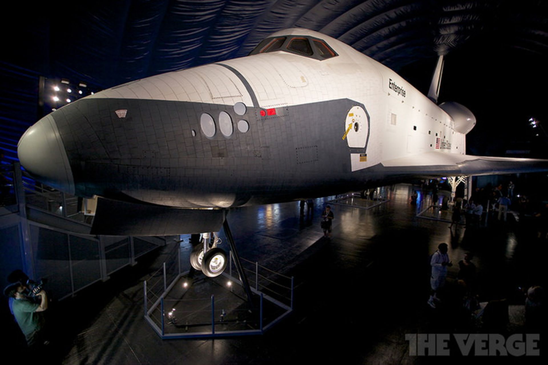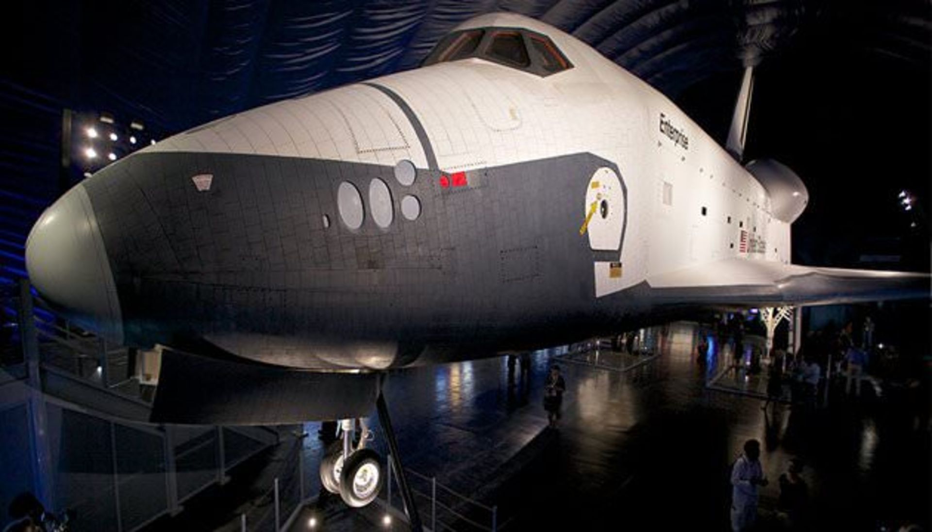 شاتل انترپرایز هماکنون در سالنی شبیه یک زمین ورزشی تنیس جا خوش کرده که به آن Space Shuttle Pavilion (غرفه شاتل فضائی) میگویند و در بخشی از موزه هوا، فضا و دریایی این شهر قرار دارد.