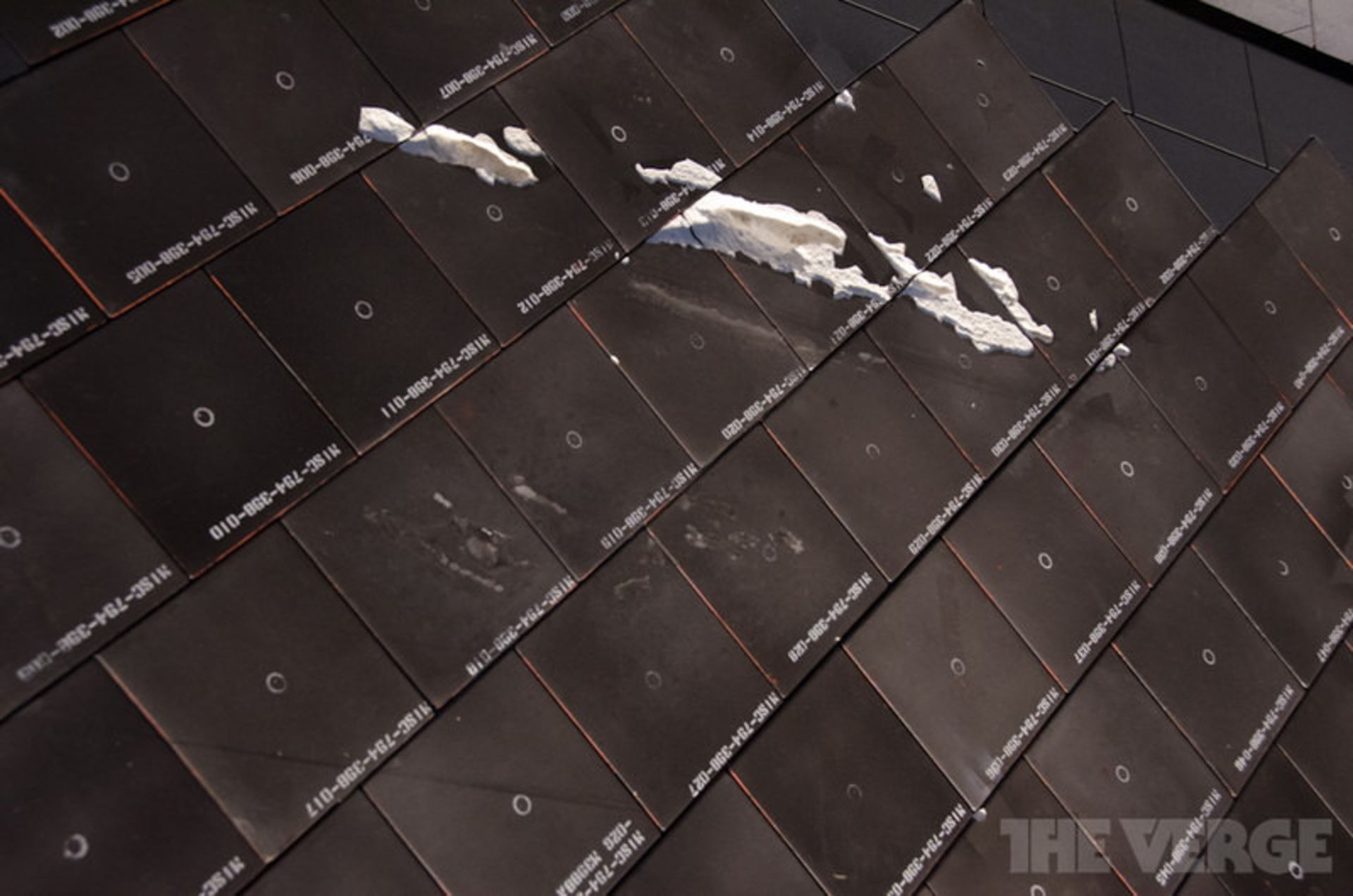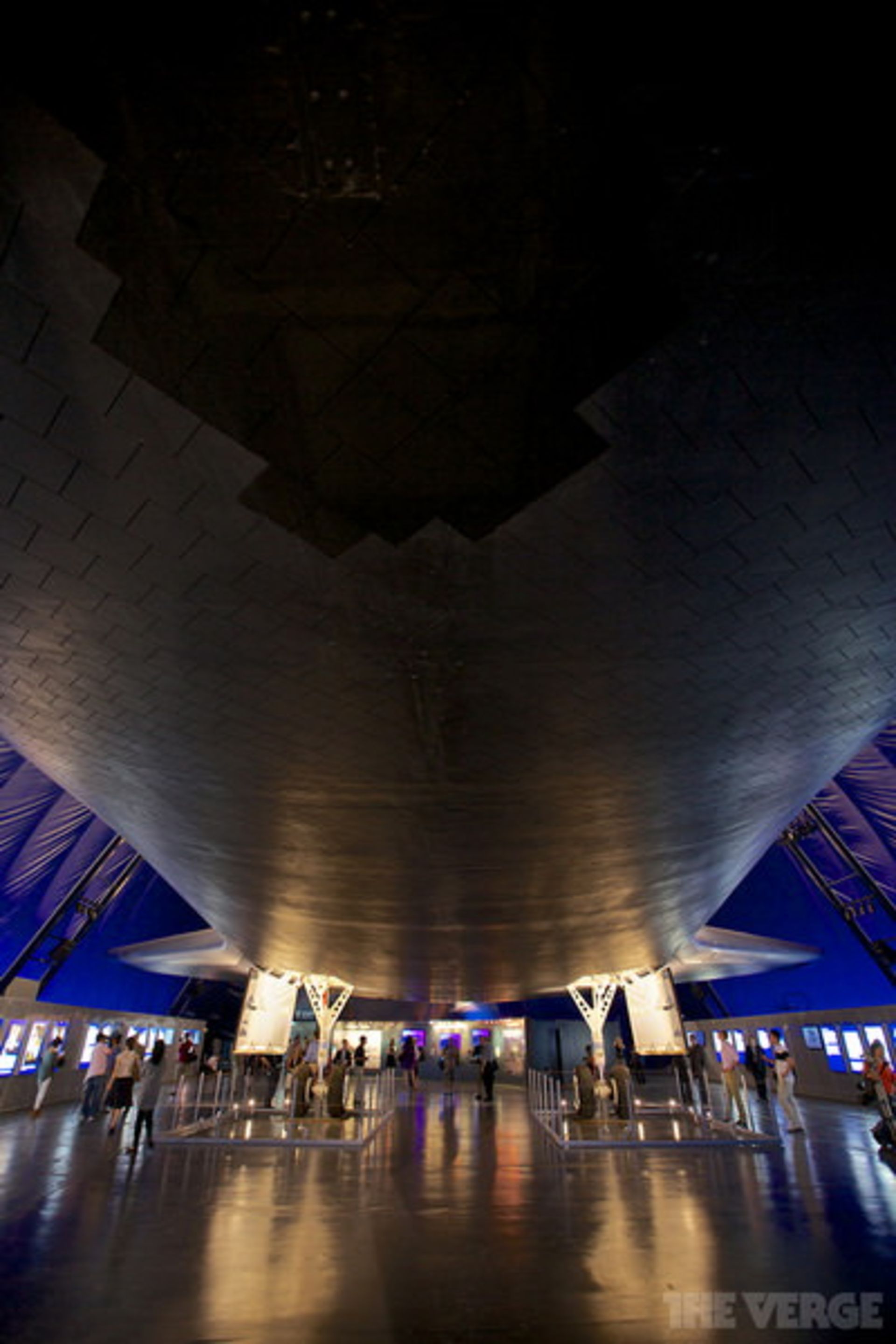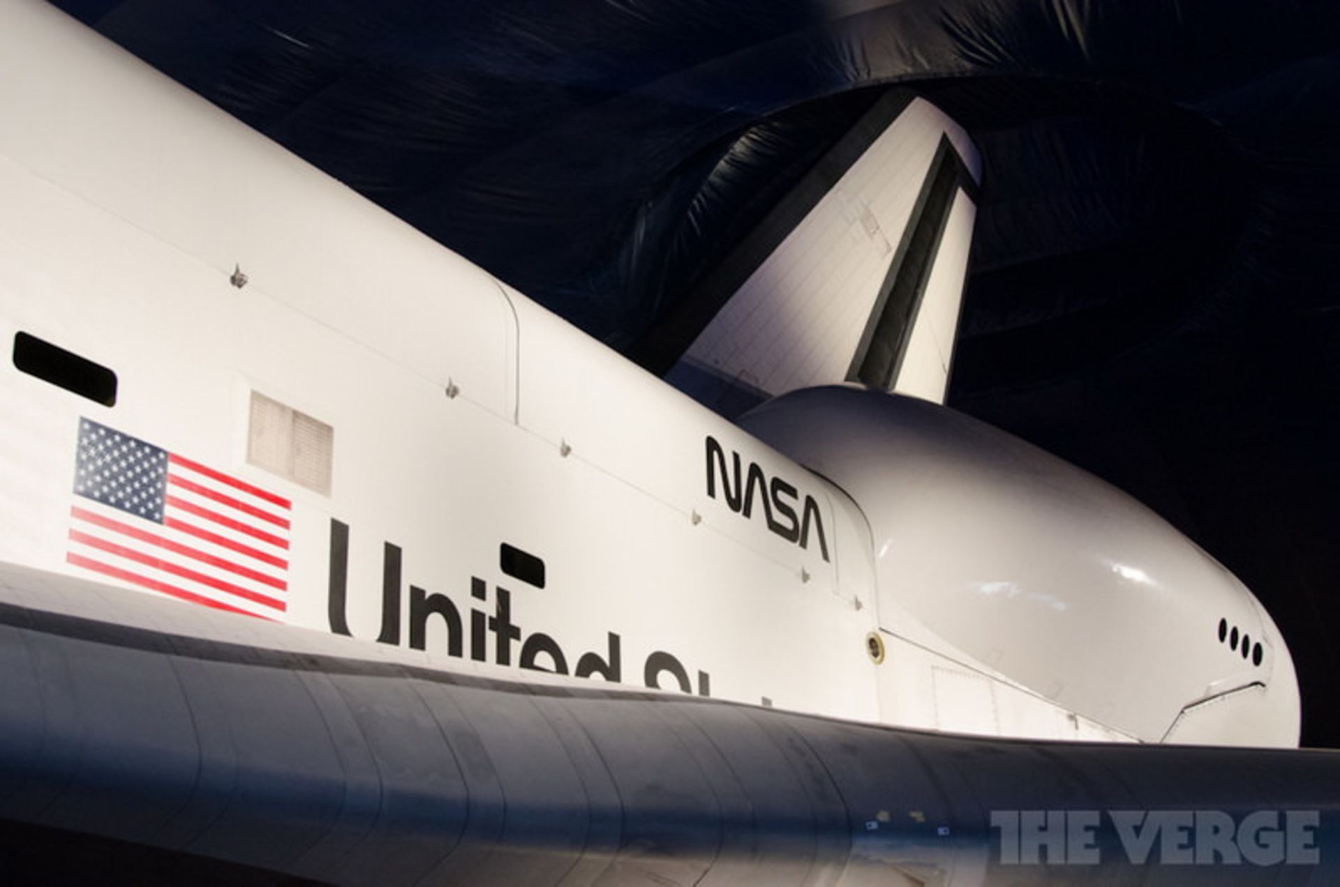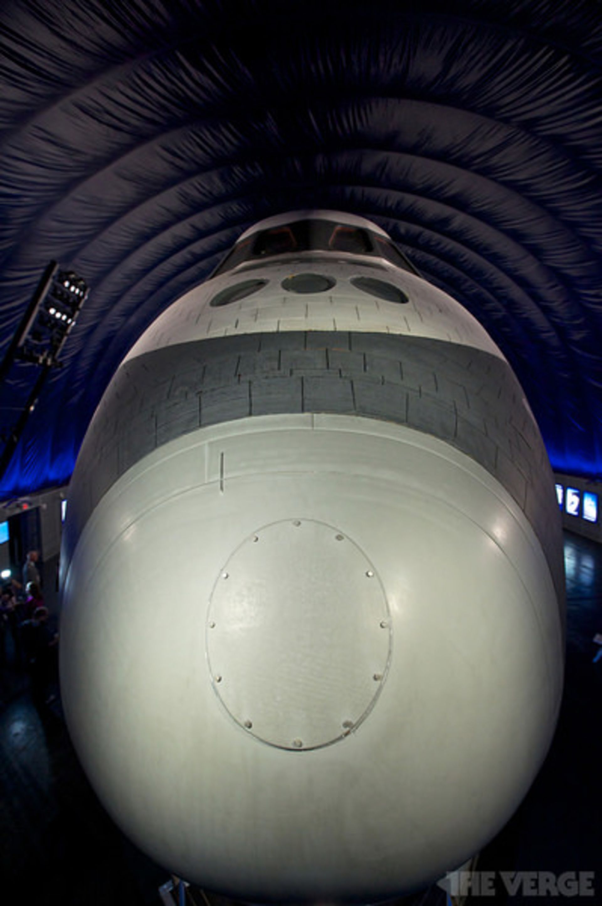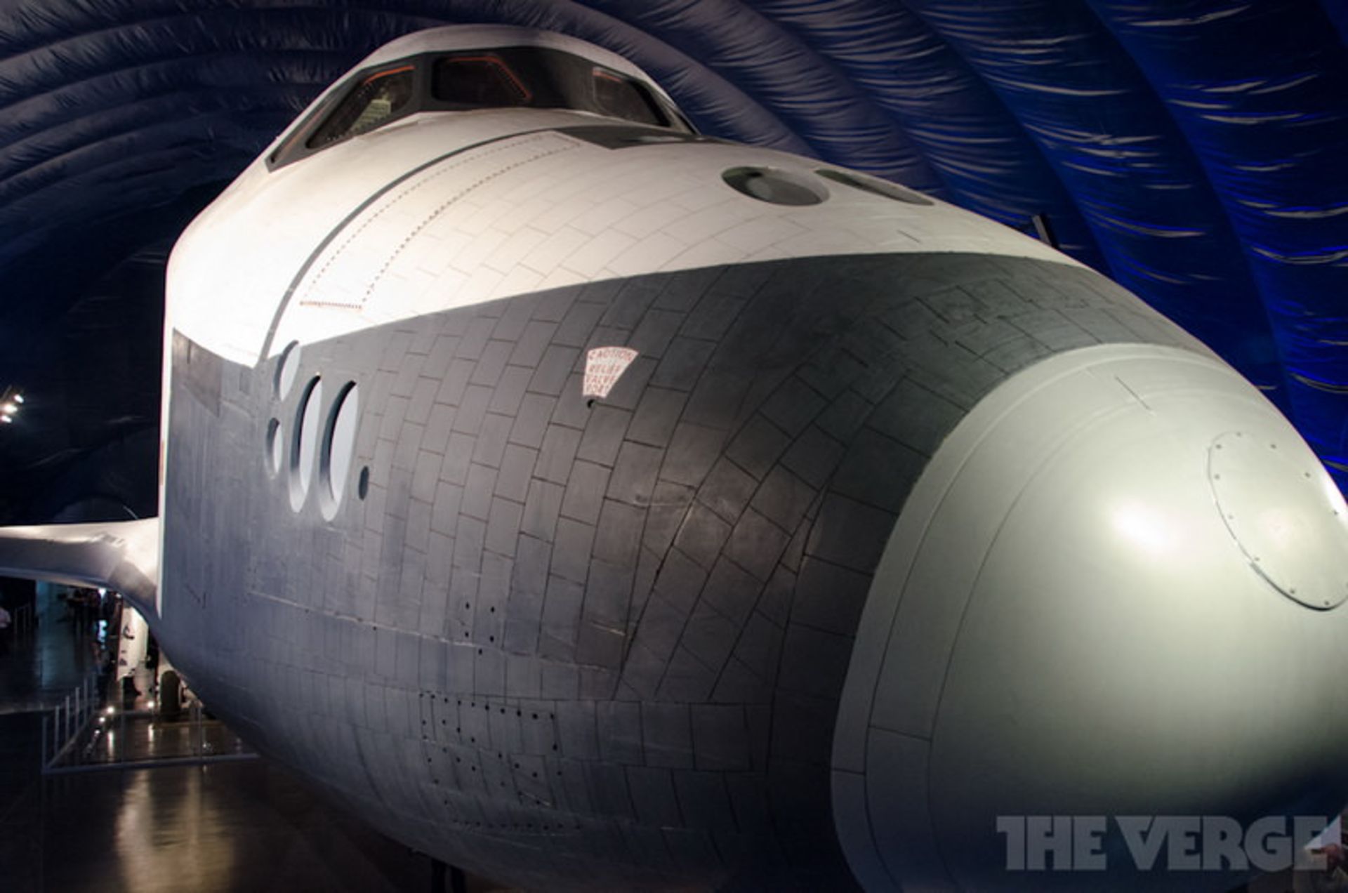 اگر حس میکنید که بدنه خارجی این شاتل خیلی تمیز است، بیشتر به این دلیل است که هرگز فشار هوا و گرمای وارده از بابت ورود به جو زمین را تجربه نکرده است. در حقیقت بدنه خارجی این پرنده مانند سایر شاتلها با سپرهای حرارتی ویژه و اجزای گوناگونی تشکیل شده است. بر روی بال سمت چپ اجزای حقیقی پرواز را کار گذاشتهاند که هر یک دارای شکل منحصر به فردی است و یک شماره شناسایی ویژه دارد.