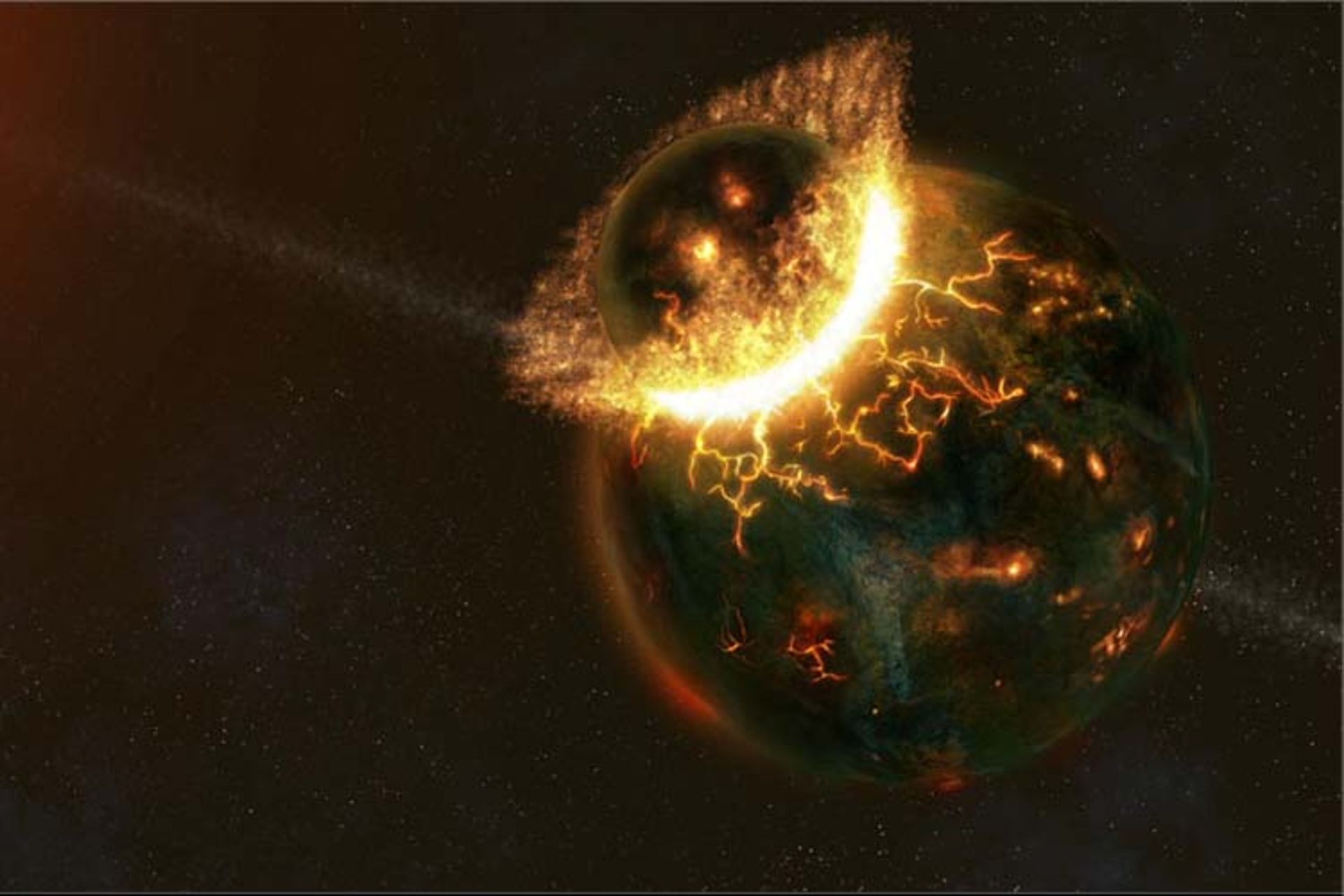 نظریهی رایج پذیرفته شده در مورد نحوهی تشکیل ماه، این است که جرم دیگری به اندازه مریخ با زمین برخورد کرده است و مواد تشکیلدهندهی ماه را به موقعیت مداری فعلی آن پرتاب کرده است. و سپس این جرم، ماه را تشکیل داده است. این مدل برای حدود دو دهه بهعنوان نظریهی رایج پذیرفته شده بود. اما این فرضیهی نهچندان قانعکننده، احتمالا صحیح نیست.