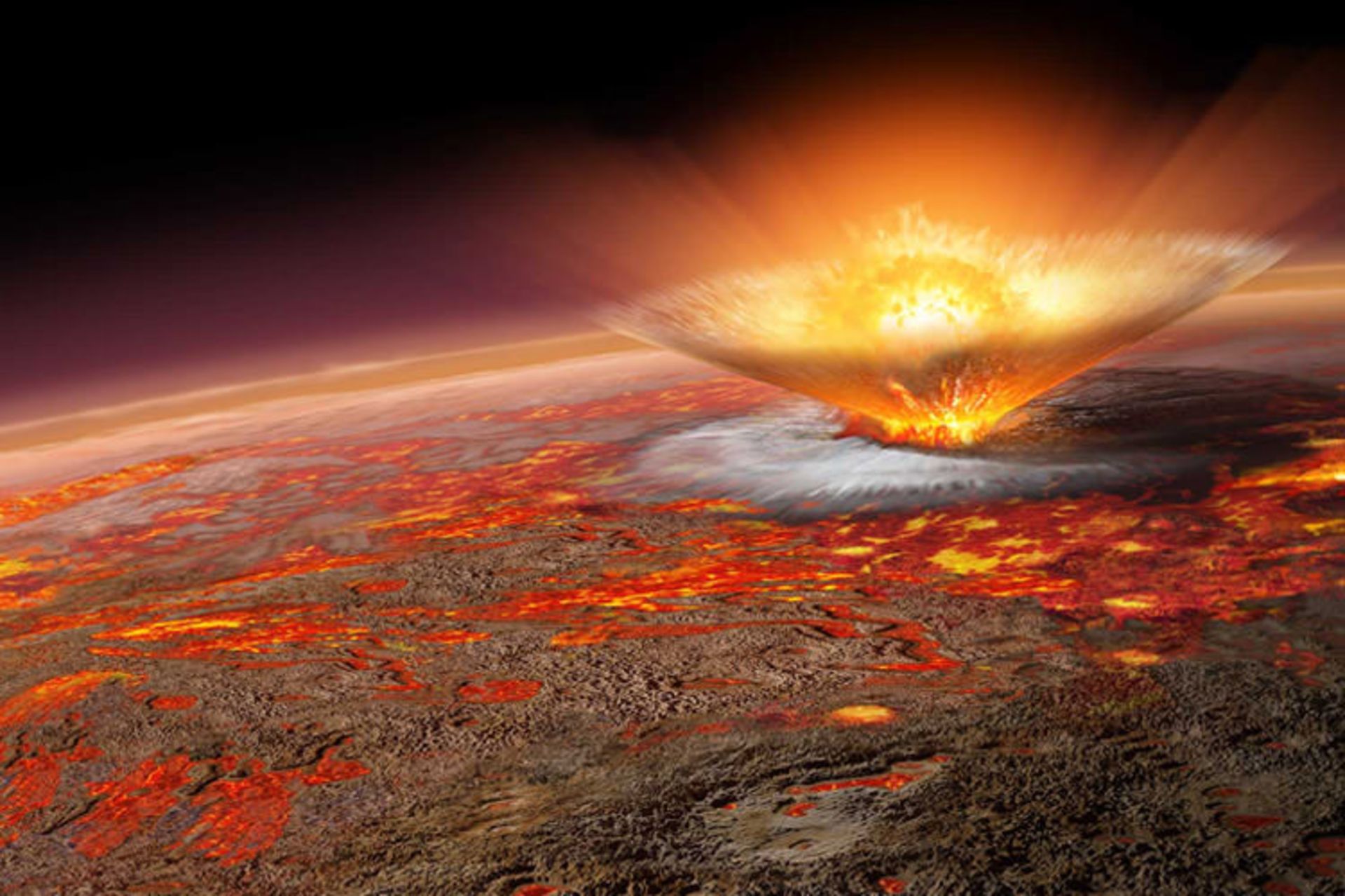 تصویری هنری از برخورد شهابسنگ ۹.۵ کیلومتری با زمین