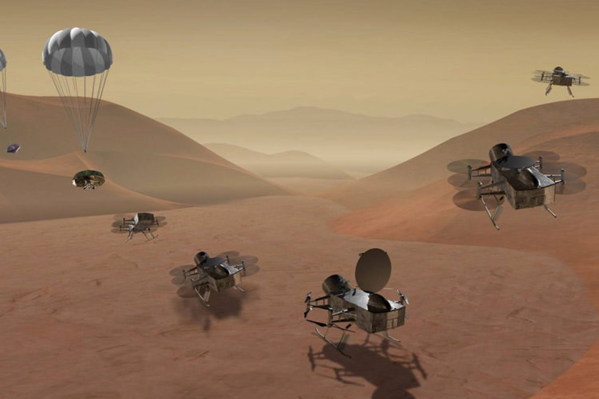 دراگونفلای، پهپادی بهاندازهی یک مریخنورد است که میتواند از نقطهای به نقطهی دیگر در سطح تایتان پرواز کند.