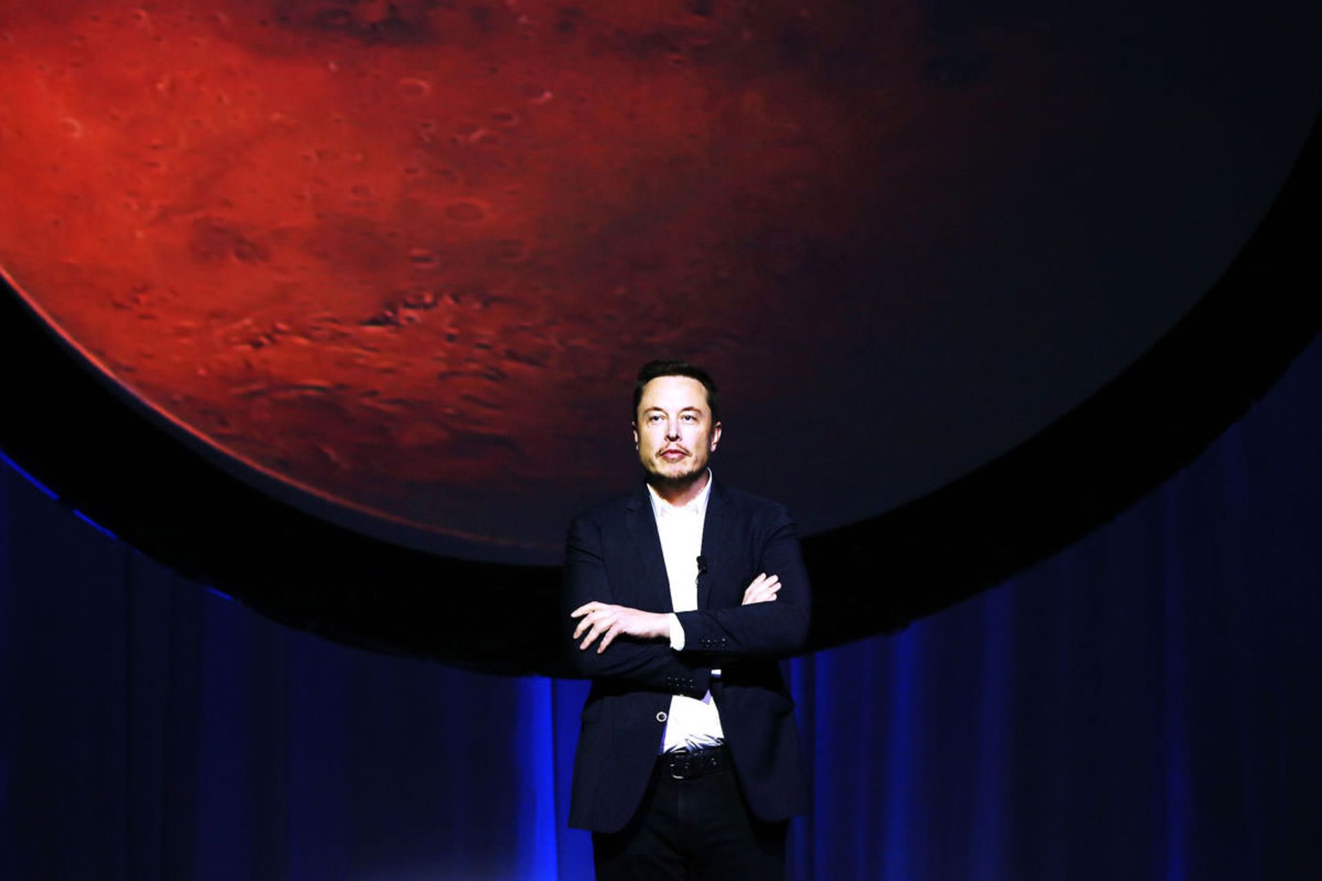 تصور هنرمند از شهری در مریخ. شرکت SpaceX قصد دارد بهکمک سیستم حملونقل فضاپیمای استارشیپ این شهر را بسازد.