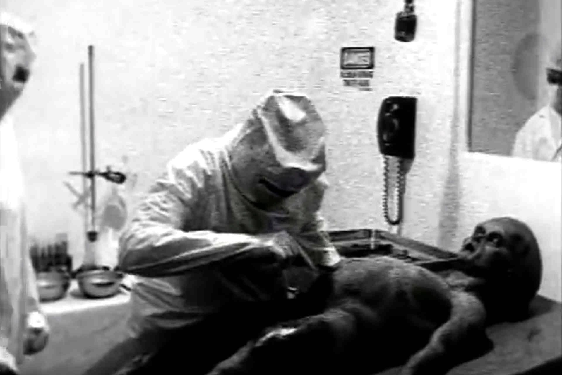 در فیلم کالبدشکافی، موجودی شبیه انسان روی میز کالبدشکافی قرار گرفته است. روی پای راست جسد میتوان زخمی را دید. این موجود بهظاهر فضایی بالاتنه و شکمی گرد و برآمده، چشمانی سیاهی و سَری کاملا طاس دارد که بسیار بزرگتر از جمجمه معمولی انسان است. گروهی از کالبدشکافان که لباس مخصوص محافظتی سفید پوشیدهاند، جسد را دوره کردهاند و در حال تشریح هستند.