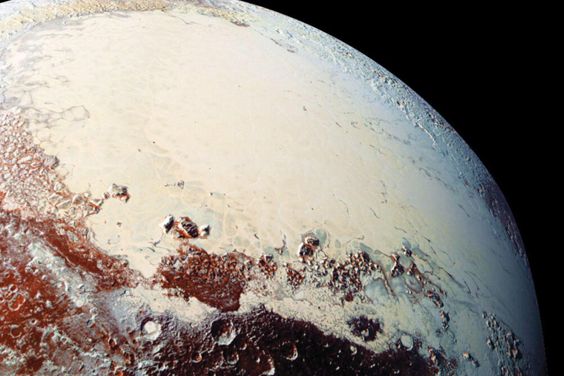مشاهدات کاوشگر نیوهرایزنز ناسا نشان میدهد سطح منطقه اسپوتنیک پلانیتا با سلولهای یخ نیتروژنی (بلوکهای چندضلعی سفید) پوشیده شده است که بهطور مرتب مواد تازه از زیر به سطح آن میآیند