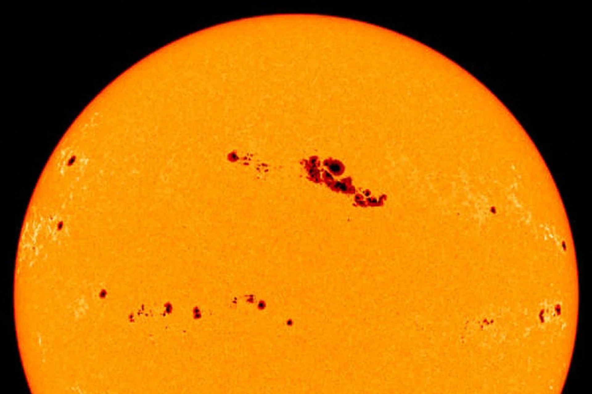 دو گروه عظیم لکههای خورشیدی روی سطح خورشید.