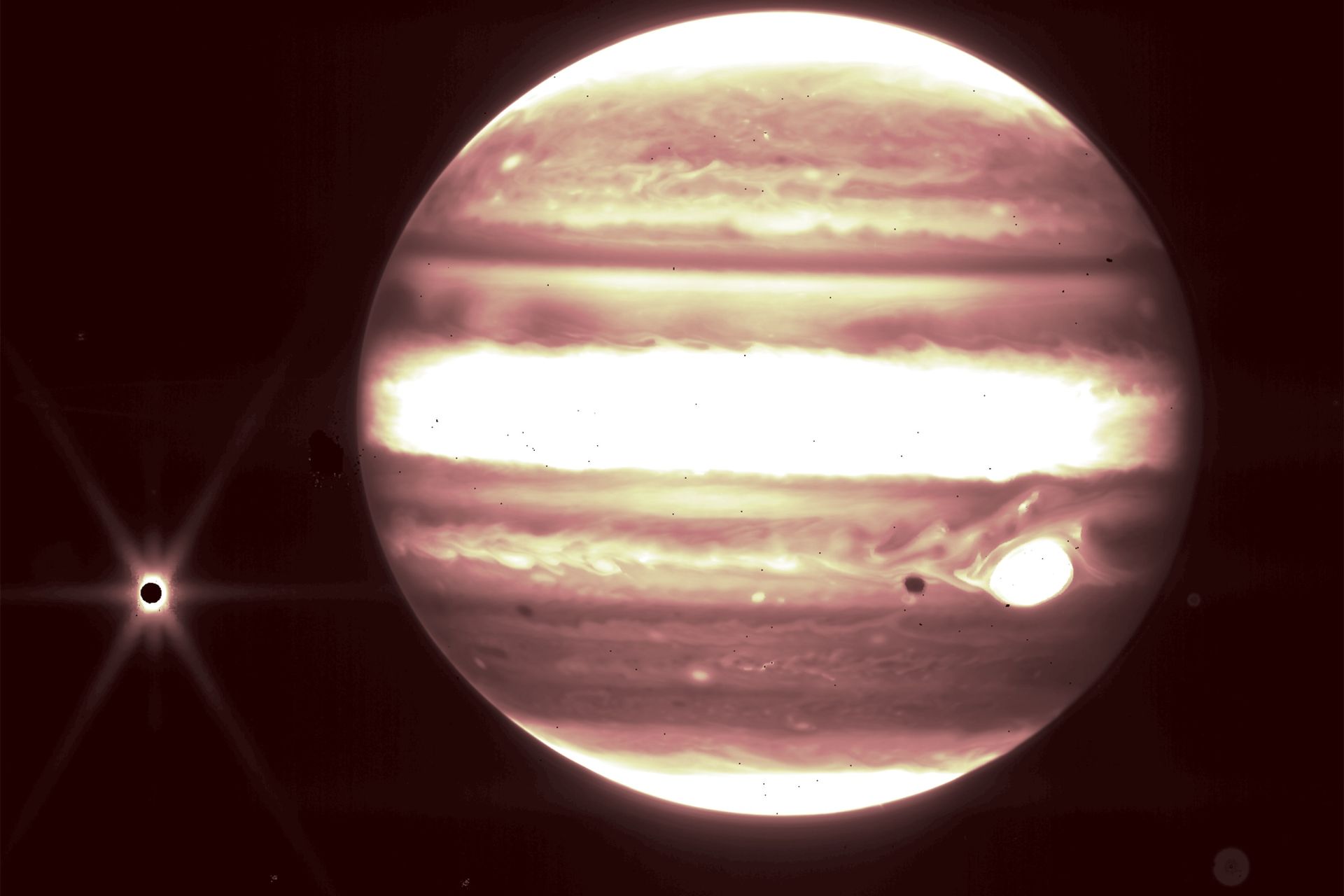 ازآنجاکه عکسهای مشتری بهعنوان راهنما برای مهندسان جیمز وب بهکار رفتند، به اندازهی عکسهای بهشدت پردازششده و تمامرنگی منتشرشده از سحابیها و کهکشانهای دور درخشان نیستند. بااینحال عکسها دقتی را نشان میدهند که میتوانیم از تصاویر جیمز وب از محدودهی بیرونی منظومه شمسی انتظار داشته باشیم. طوفان نمادین مشتری یا لکه قرمز بزرگ این سیاره و همچنین قمر اروپا بهوضوح در عکسها دیده میشوند. حلقههای نازک مشتری نیز که در اغلب تصاویر ثبتشده از این غول گازی ظاهری بسیار کمنور دارند، در عکسهای جیمز وب به چشم میخورند.