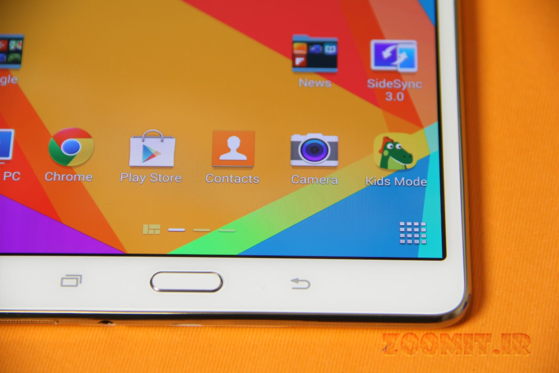 در قسمت پایین صفحه نمایش علاوه بر دکمه فیزیکی خانه، دو دکمه لمسی در طرفین وجود دارد. همچون S5، در دو تبلت جدید Tab S سامسونگ، سنسور اثرانگشت خوان با دکمه فیزیکی خانه یکپارچه شده است تا کاربران بتوانند تجربهای مشابه آنچه در گلگسی اس ۵ برای باز کردن قفل دستگاه یا لاگین کردن در برخی از سرویسها، داشتهاند در این تبلتها نیز تجربه کنند.