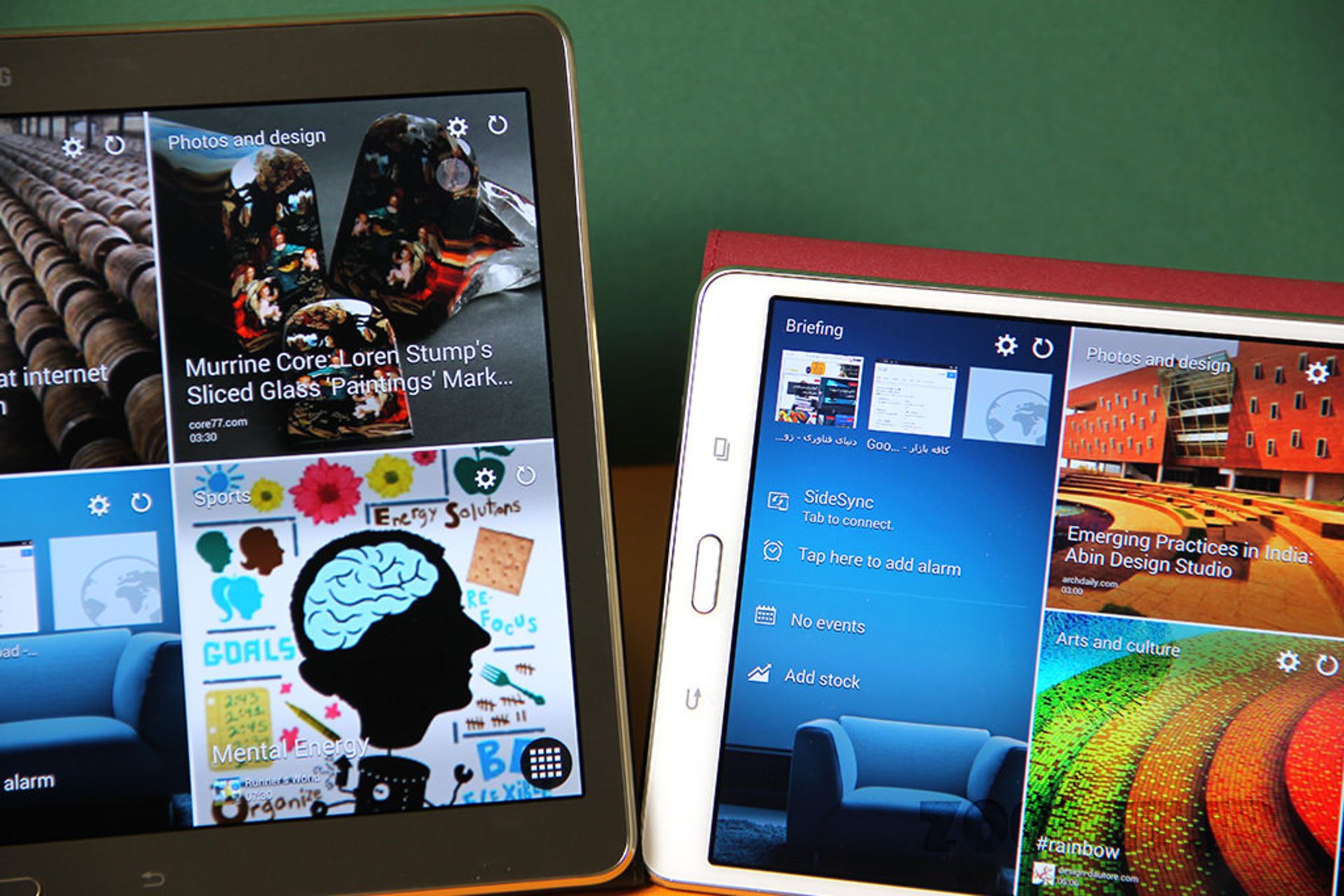 اکوسیستم غنی اپل برای فرمفکتور تبلت فاصله نسبتا زیادی با اندروید کم فروغ در این زمینه دارد که باعث میشود دسترسی به اپلیکیشنهای بهینه و متنوع در آیپدها بهمراتب سادهتر از تبلتهای اندرویدی و از جمله تباسها باشد. سامسونگ برای جبران این نقیصه علاوه بر بهکارگیری رابط کاربری همیشگی خود در کنار Magazine UX، امکانات جذابی همچون اشتراک رایگان مجلههای معتبر دنیا، مولتی تسکینگ کارآمد، ریموت کنترل لوازم خانگی، قابلیت مکالمه و تماس و ویژگی جالب SideSync را به تبلتهای خود اضافه کرده است.