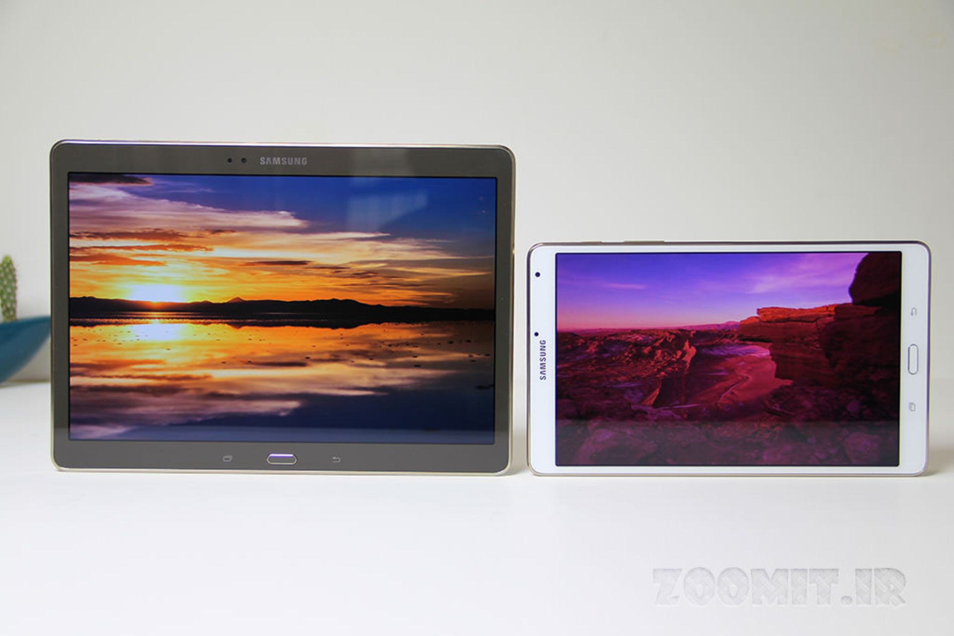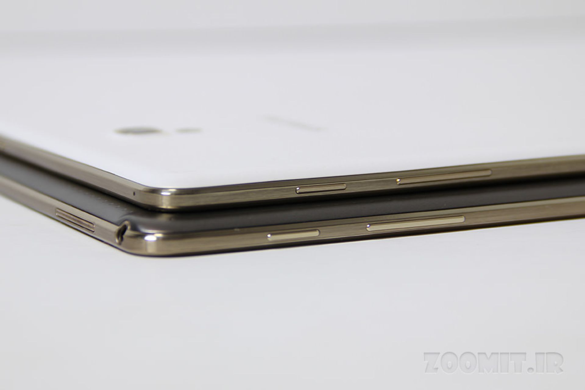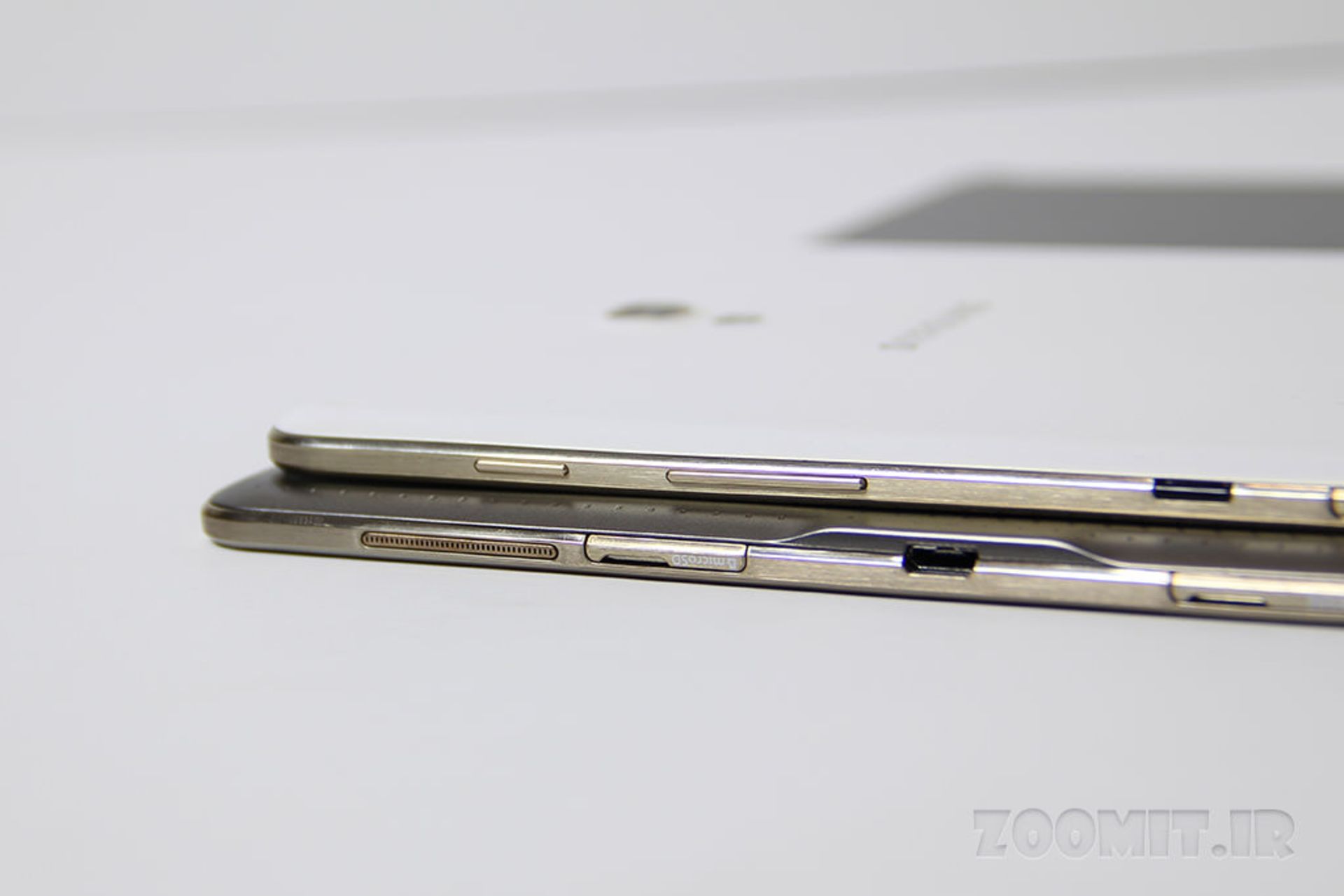 هر دو تبلت ۸.۴ و ۱۰.۵ اینچ Tab S تنها ۶.۶ میلیمتر ضخامت دارند و این بدین معنی است که هرچند سامسونگ توانسته ضخامت تبلتهای خود را نسبت به ۷.۵ میلیمتر آیپد ایر و آیپد مینی باریکتر کند، اما هنوز ۰.۲ میلیمتر ضخیمتر از اکسپریا Z2 Tablet سونی است.
