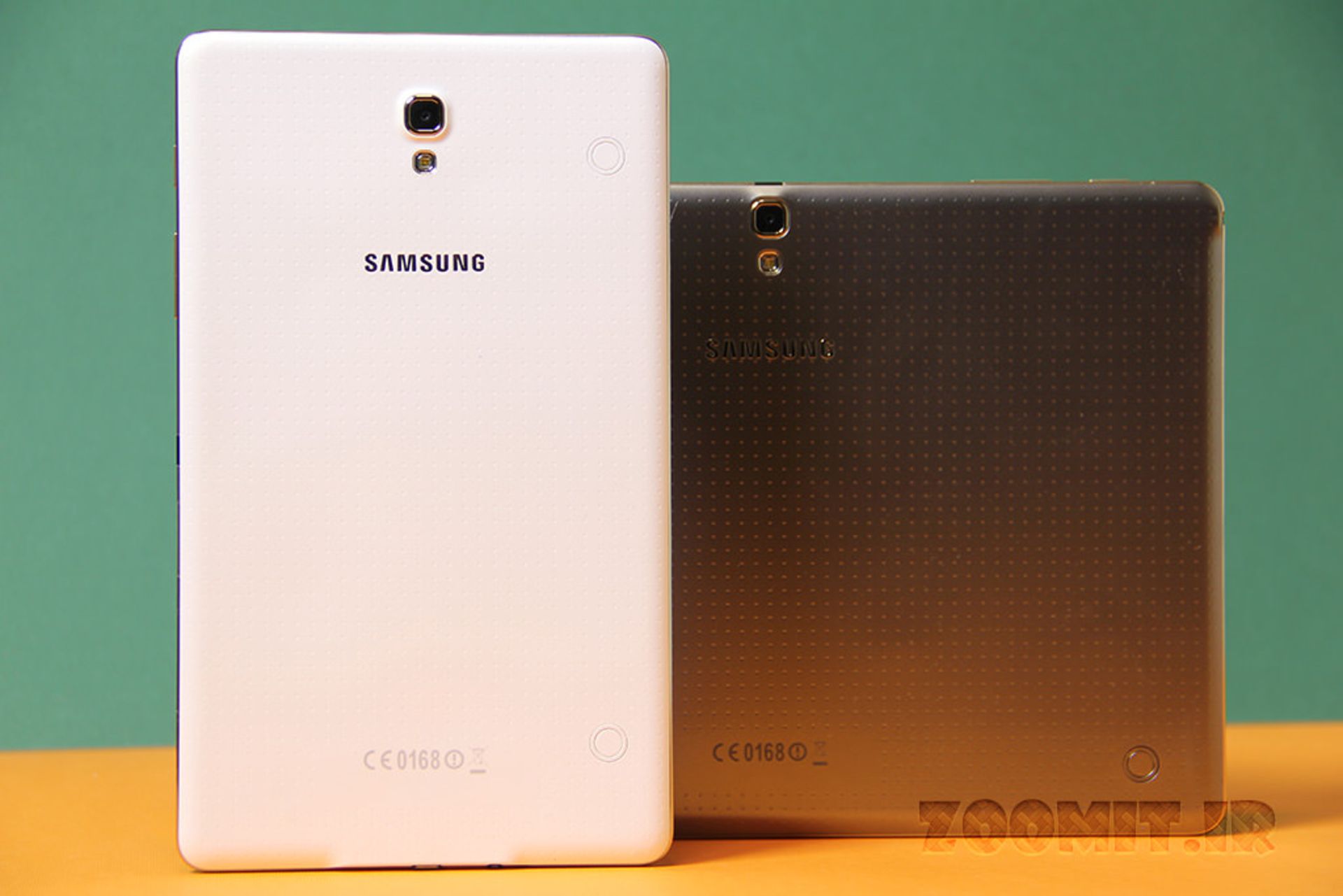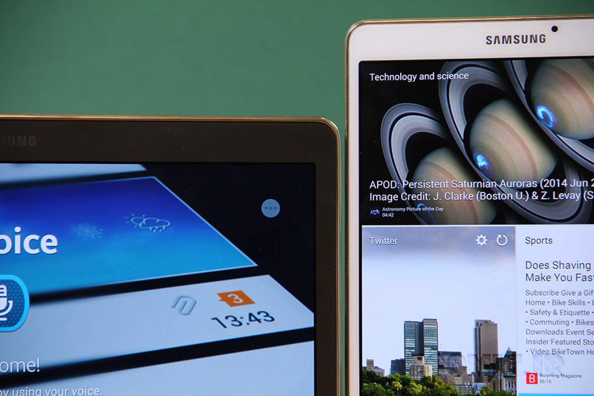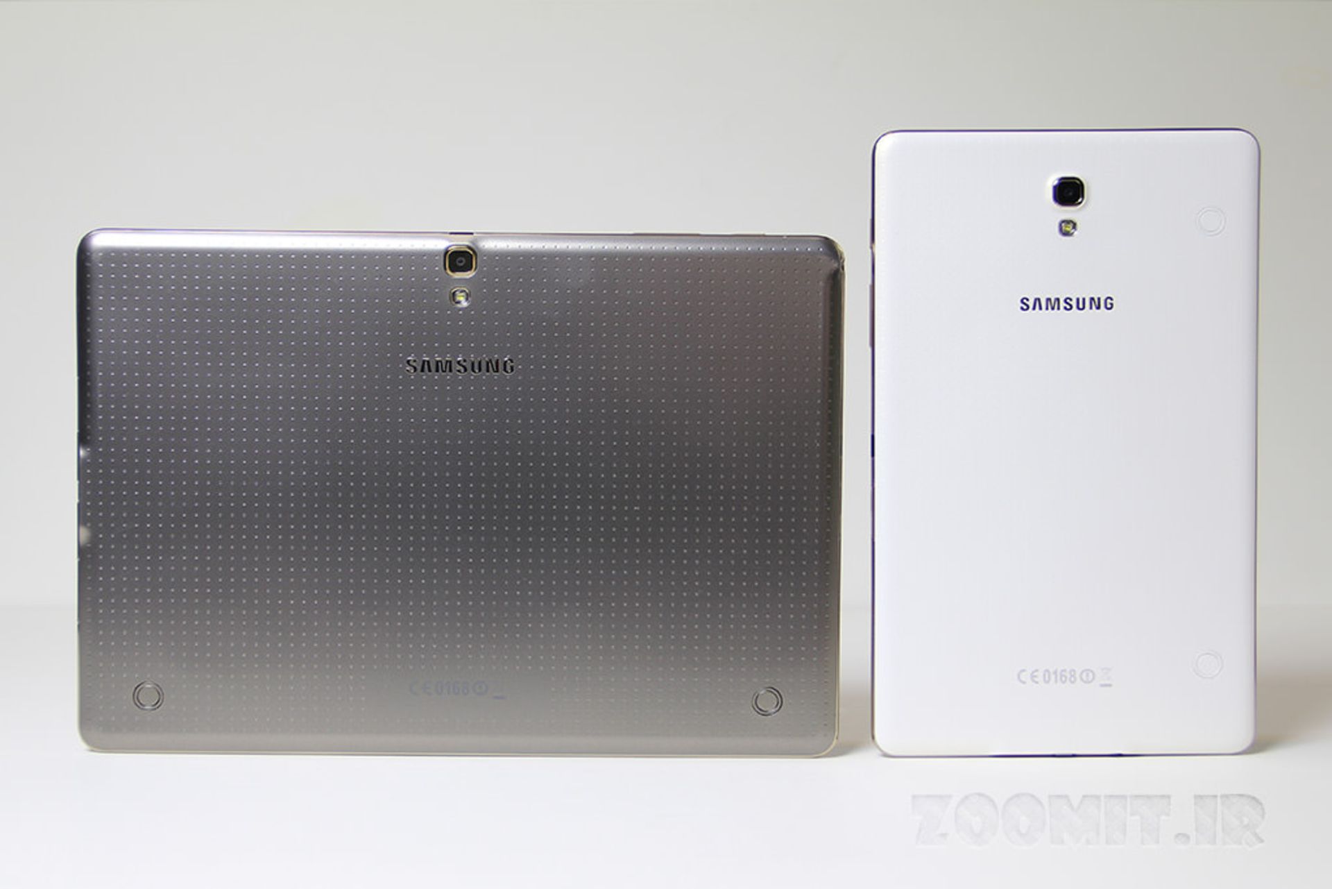 هر دو تبلت ۸.۴ و ۱۰.۵ اینچ Tab S تنها ۶.۶ میلیمتر ضخامت دارند و این بدین معنی است که هرچند سامسونگ توانسته ضخامت تبلتهای خود را نسبت به ۷.۵ میلیمتر آیپد ایر و آیپد مینی باریکتر کند، اما هنوز ۰.۲ میلیمتر ضخیمتر از اکسپریا Z2 Tablet سونی است.